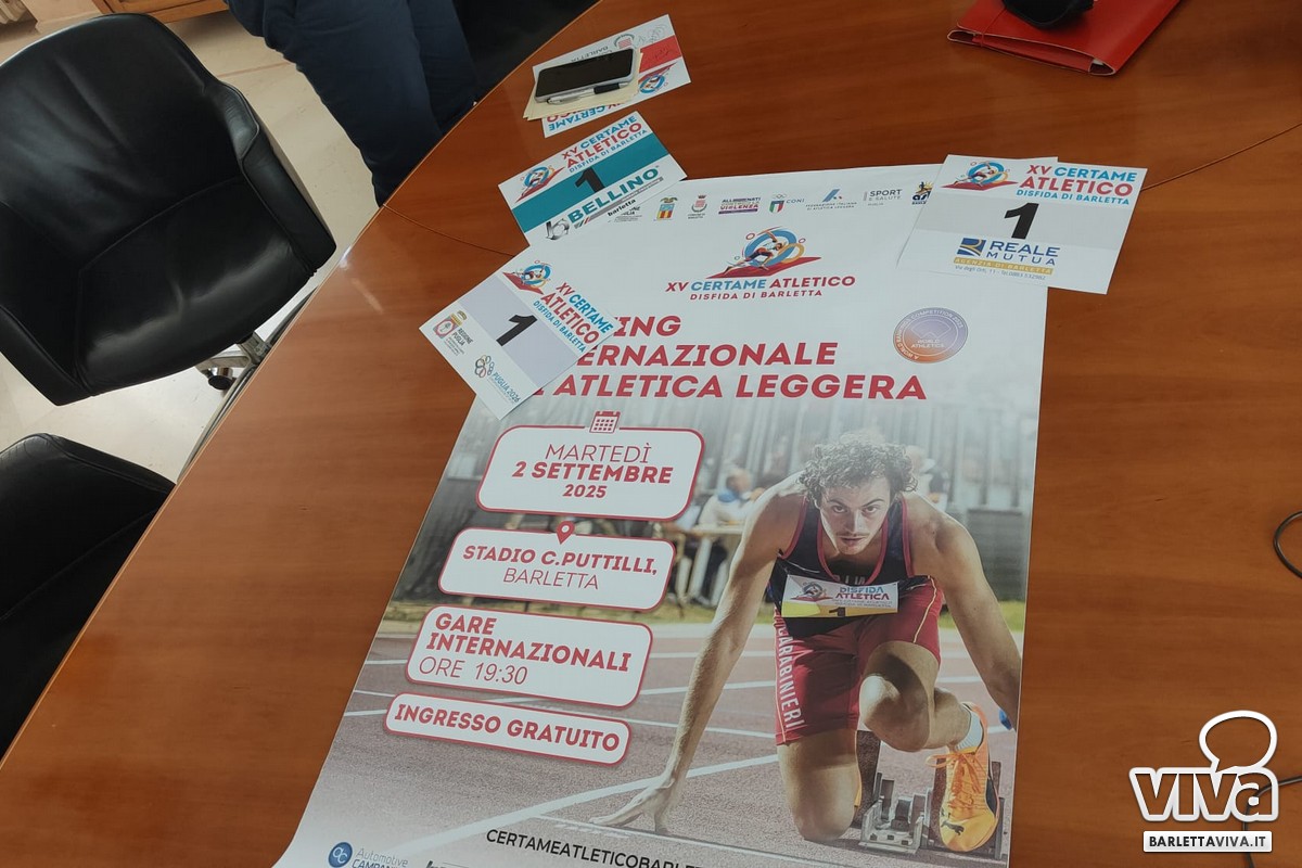 Si è svolta nella mattinata di lunedì 1° settembre nella Sala Giunta del comune di Barletta la conferenza stampa del XV Certame Atletico Disfida di Barletta, evento di importanza regionale e nazionale che si svolgerà oggi 2 settembre presso lo Stadio Cosimo Puttilli.Il sindaco Cosimo Cannito saluta e ringrazia i presenti Veronica Inglese, Fabrizio Mori, Eusebio Haliti, Marcello de Gennaro, Francesco Montenero, Ambra Sabatini, Romero Crespo, Michele Paparella, Giuseppe Rossano, Maria Assunta Paolillo.