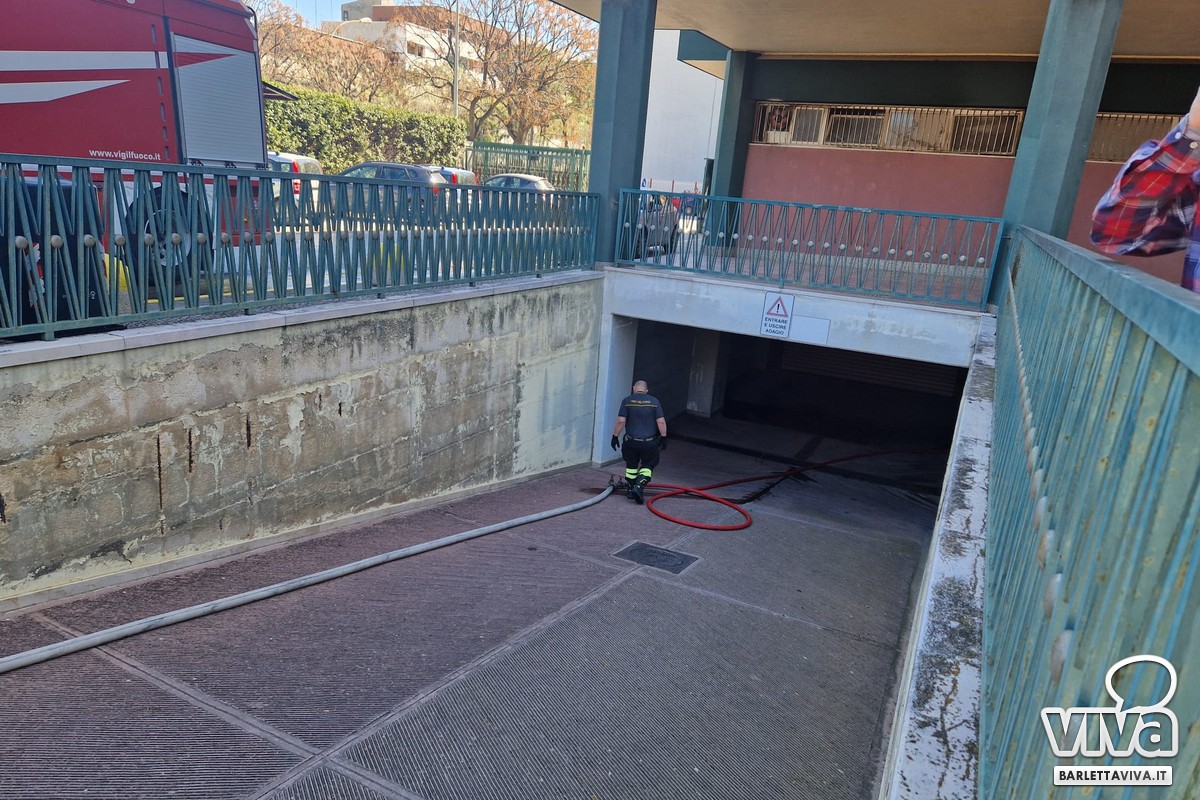 Momenti di tensione in un box auto di un complesso residenziale in via dei Pini, alla periferia di Barletta, dove una vettura ha preso fuoco per cause ancora da accertare.