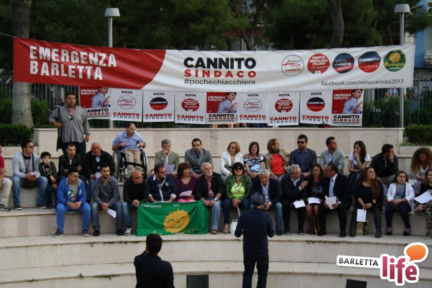 «I candidati Alfarano e Cascella sono stati imposti ai barlettani da chi barlettano non è» esordisce Cannito e incalza: «Io ho messo tanto nel mondo della sanità barlettana e con altri attori, tra cui il grande Ciccio Salerno, mi sono sempre battuto affinché tutto rendesse al meglio. L'ospedale di Barletta è stato funzionalizzato nel settore onco-ematologico e a breve apriremo anche il reparto. Aiutateci ad abbattere la macchina burocratica, io sono vittima del divario digitale, mi sento un analfabeta tecnologico e sono consapevole che bisogna parlare con i mezzi dei giovani per avvicinarli alla politica. Io sono in politica da tempo e conosco i problemi che affliggono la comunità barlettana».