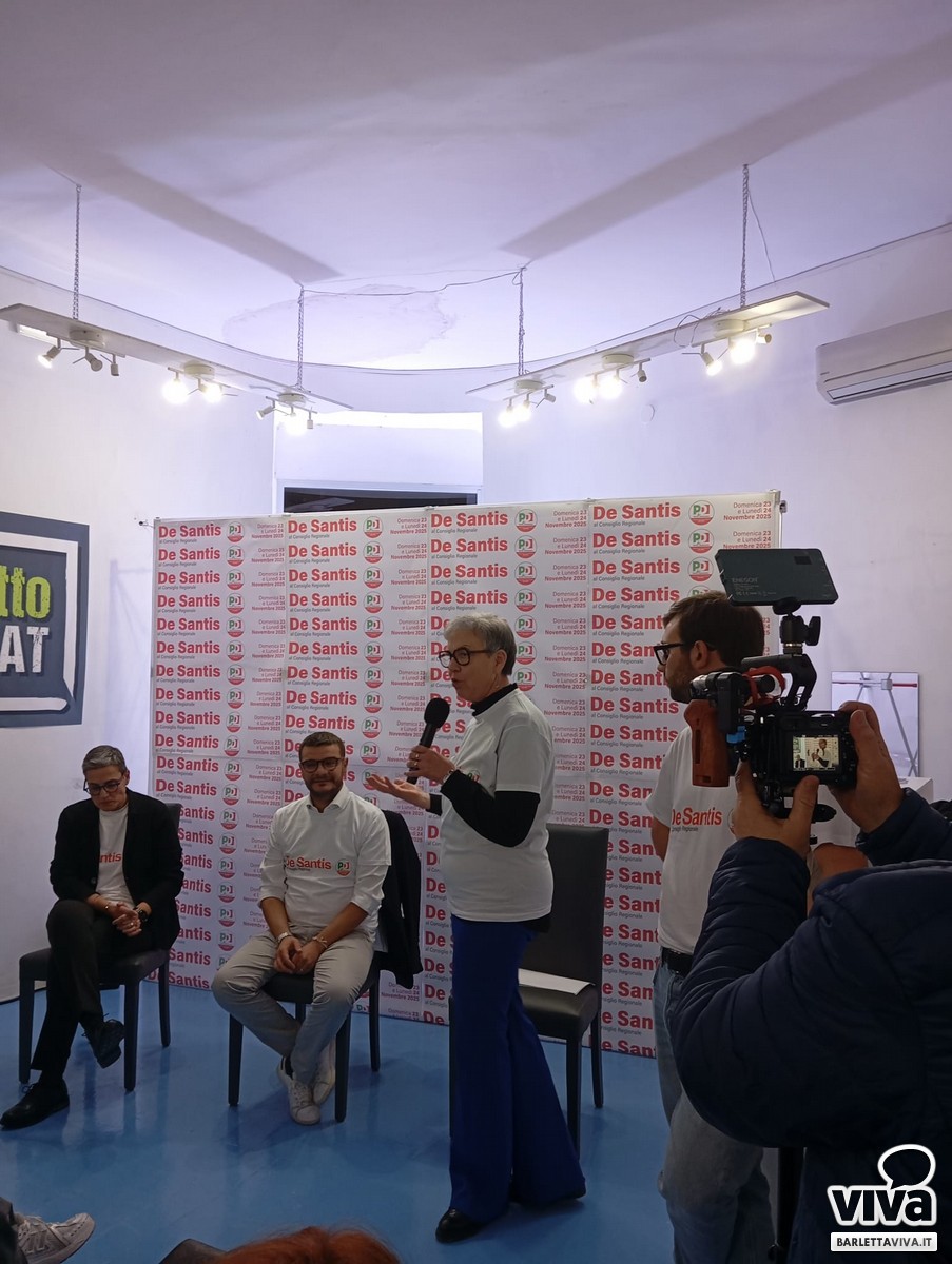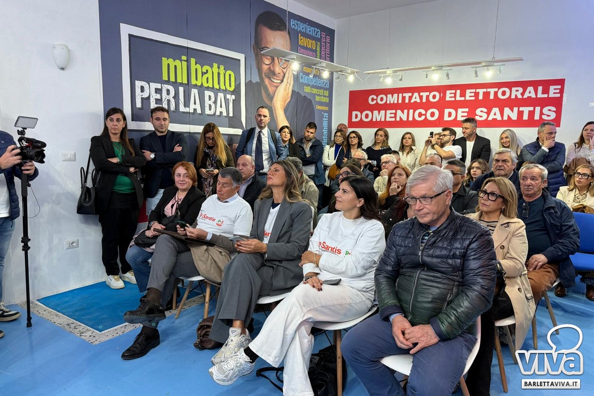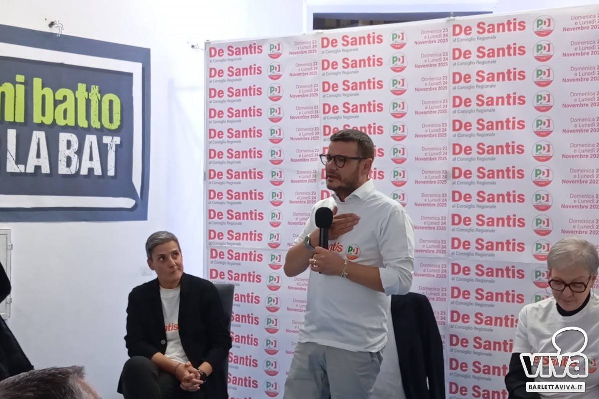 «Questo territorio va difeso, ascoltato, risanato anche dal punto di vista ambientale. L'agricoltura va sostenuta, la crisi idrica va affrontata con interventi infrastrutturali importanti come i dissalatori. La politica deve tornare a occuparsi di questo e non limitarsi a gestire il consenso elettorale, togliendo e non offrendo opportunità al territorio e ai cittadini e alle cittadine. Per questo voglio battermi, per voi e per tutta la Bat», ha concluso De Santis.