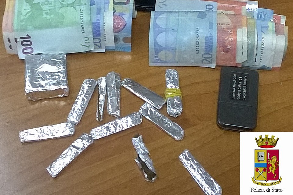 L'acquirente, notato l'arrivo degli agenti, è riuscito a fuggire facendo perdere le proprie tracce mentre il venditore è stato bloccato e sottoposto a perquisizione personale. L'uomo è stato trovato in possesso di una stecca di hashish del peso di 7 gr., occultata all'interno della cover di un telefono cellulare, e della somma di 75 euro suddivisa in banconote di piccolo taglio e ritenuta provento dell'attività illecita.