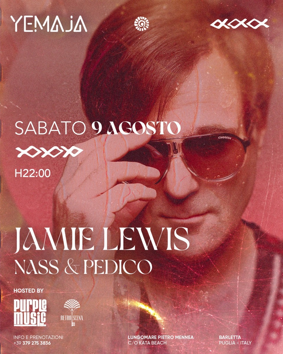 Ospite dello Yemaja (ristorante e locale per eventi della Litoranea Pietro Mennea di Barletta) durante la serata del 9 agosto, Jamie Lewis - dj e producer – farà viaggiare la pista a ritmo dei suoi dischi più premiati.