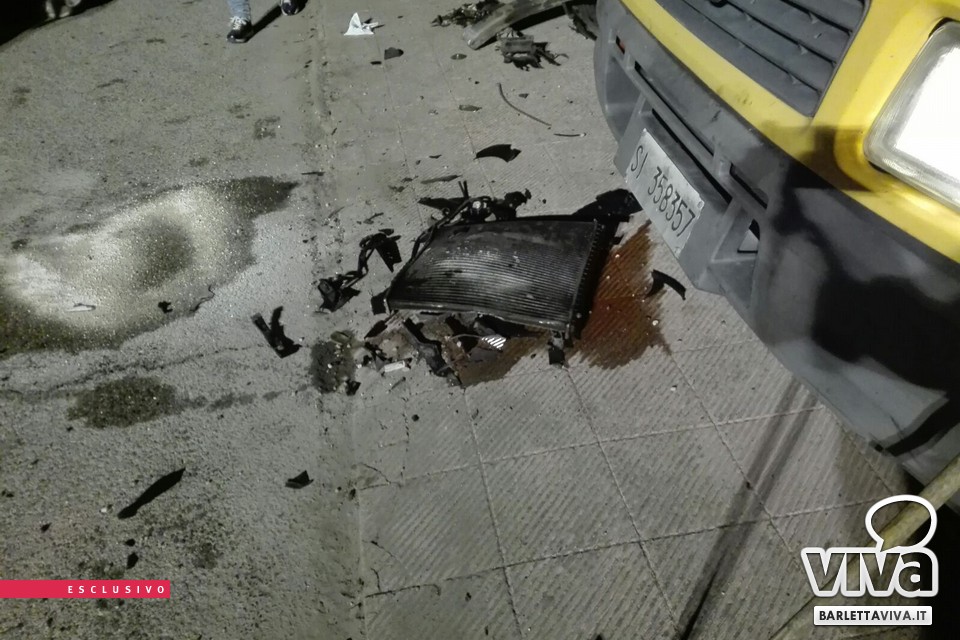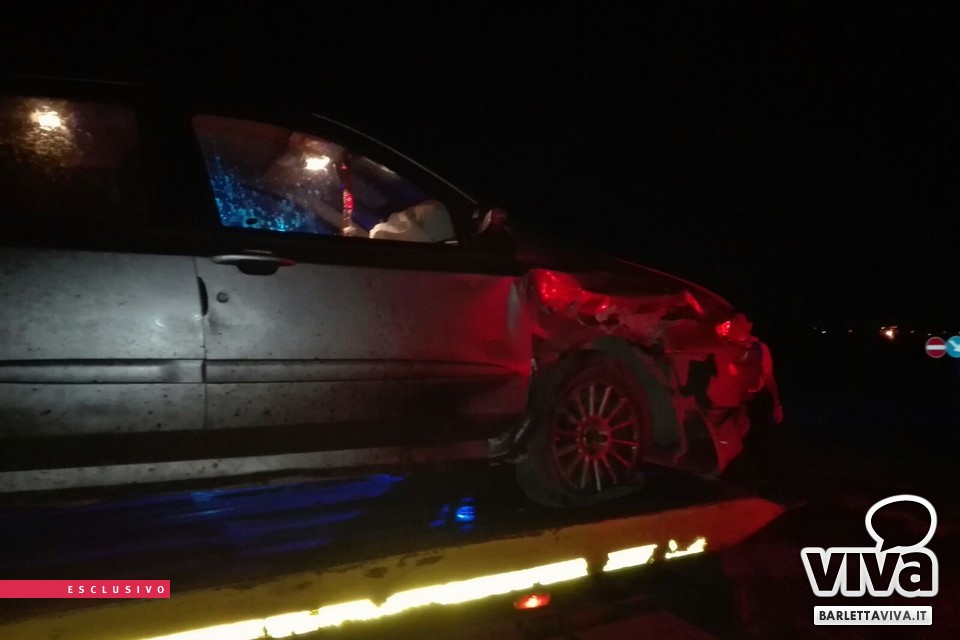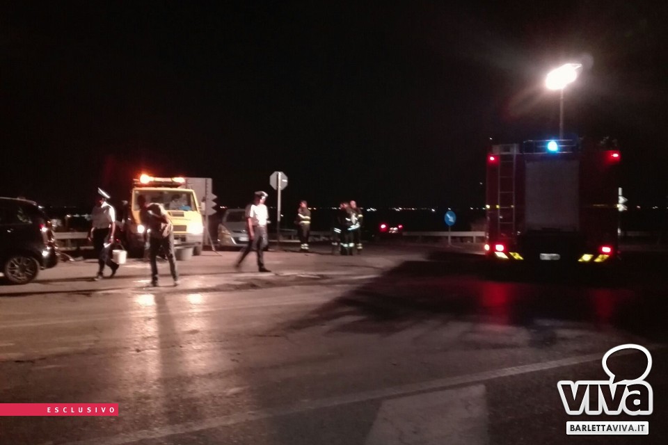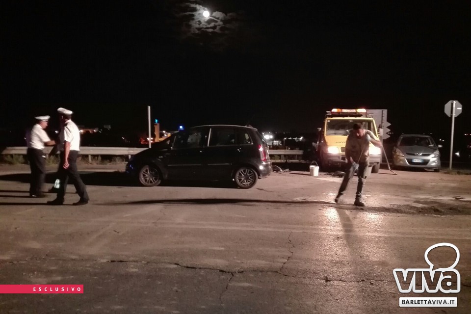 Ancora un impatto tra due auto, precisamente nel tratto di strada tra via Trani e l'ingresso della strada statale 16 bis di Barletta "Madonna dello Sterpeto" su quel cavalcaferrovia non nuovo a questo genere di eventi nefasti forse a causa della scarsa visibilità di quegli incroci, troppo poco illuminati dall'imbrunire in poi.
