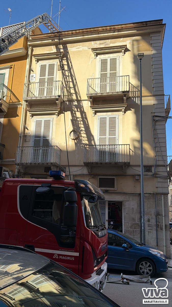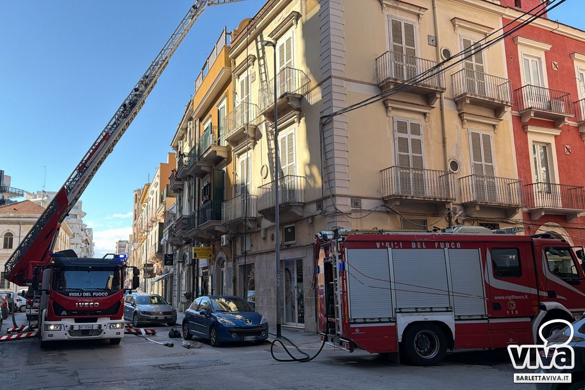 Incendio sul tetto di un palazzo in via d'Aragona a Barletta