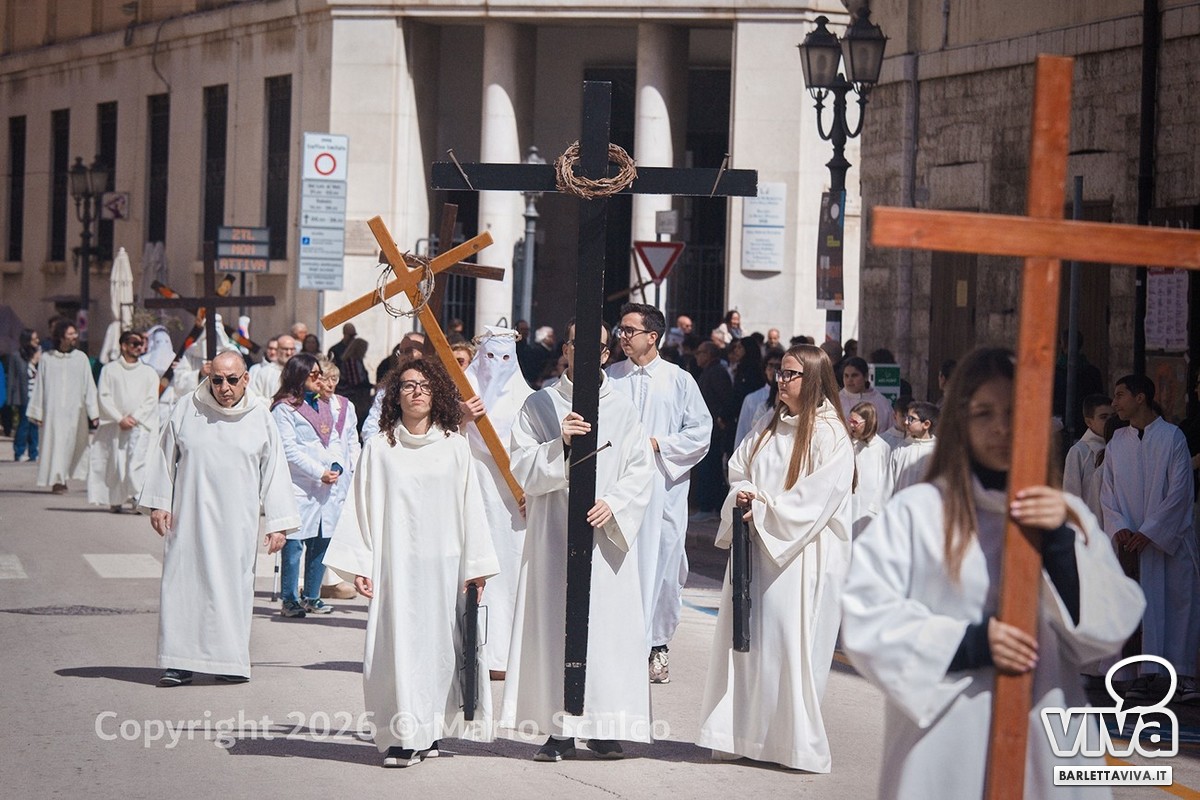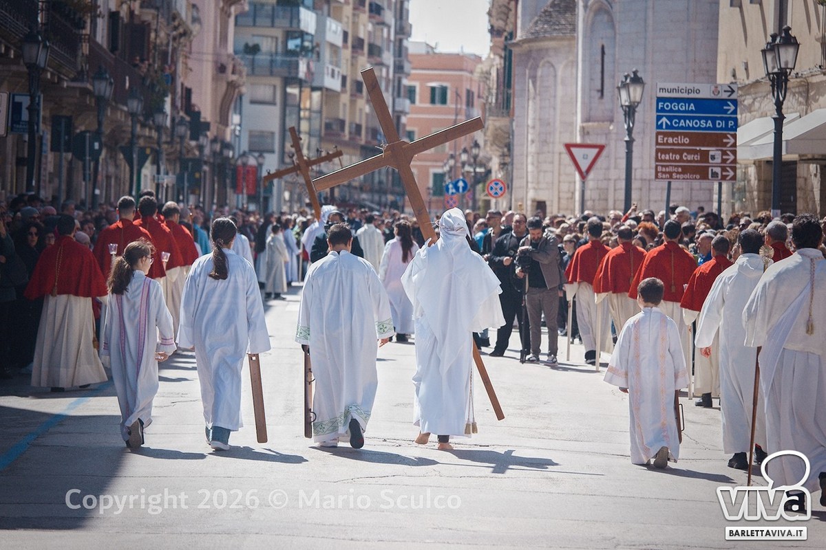 Barletta ritrova uno dei suoi momenti popolari più sentiti e partecipati. Dopo giorni segnati da pioggia, vento forte ed emergenze, oggi un sole caldo e luminoso ha accompagnato la giornata del Venerdì Santo, consentendo lo svolgimento regolare della processione eucaristico-penitenziale dell'Ora Nona. Un ritorno alla luce, quasi simbolico, in un contesto in cui molte celebrazioni nelle città vicine del nord-barese hanno subito modifiche o rinvii. A Barletta, invece, il rito si è compiuto come da tradizione, restituendo alla comunità uno dei momenti più intensi e identitari dell'anno.