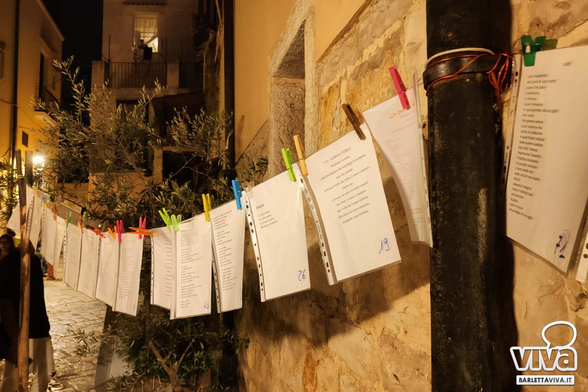 Le poesie, quasi 200 in tutto, hanno toccato i temi più disparati: la tradizione, il territorio, il mare, la famiglia, l'amore, le amicizie e persino l'attuale e ricorrente tema delle guerre in corso. Esposte anche alcune poesie in dialetto e in vernacolo barlettano, per le quali è stata fornita anche una traduzione in italiano.La diciannovesima edizione del concorso ha raccolto opere e adesioni da 98 poeti provenienti da 16 regioni d'Italia. Tutte le opere inviate partecipano all'assegnazione del Premio Giuria 1° classificato costituito dalla Targa artistica (manufatto dell'artista Stefano Pelle) e dal Trofeo "Barletta città della poesia" e delle Medaglie artistiche per il 2° e 3° classificato.