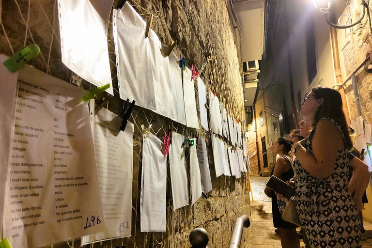 Nelle sere dal 13 al 16 agosto, Vicolo Stretto si è trasformato nella Stradina dei Poeti. A fare da sfondo alle composizioni a tema libero e in forma anonima, le vecchie mura delle case del centro storico.