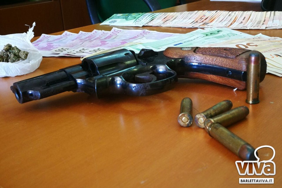 In particolare, a seguito di attività info-investigativa, la Polizia Giudiziaria ha appreso che in un appartamento del centro storico, in uso alla fidanzata di un noto pregiudicato barlettano, erano illegalmente detenute armi, munizioni e droga. A seguito di perquisizione omiciliare presso l'abitazione della donna, che al momento del controllo era sola in casa, sono stati rinvenuti e sequestrati un revolver Smith & Wesson 357 Springfield Mass con matricola abrasa, rifornito con 6 cartucce calibro 357 Magnum, e la somma di 16.000 euro in contanti. Rinvenuti e sequestrati anche 5 grammi di marijuana, motivo per cui alla donna è stata contestata la detenzione di sostanze stupefacenti per uso personale.