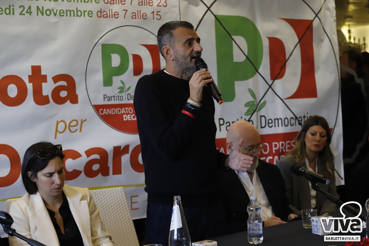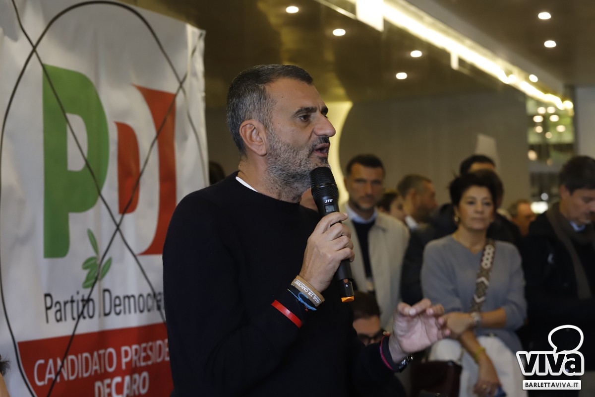 Presenti all'incontro anche il segretario regionale (nonché candidato alle regionali nella BAT) Domenico De Santis, il senatore Francesco Boccia, i sindaci del territorio Giovanna Bruno (Andria), Amedeo Bottaro (Trani) e Michele Lamacchia (San Ferdinando), l'assessore uscente e candidata per la BAT Debora Ciliento, oltre a vari consiglieri comunali del territorio in quota PD.