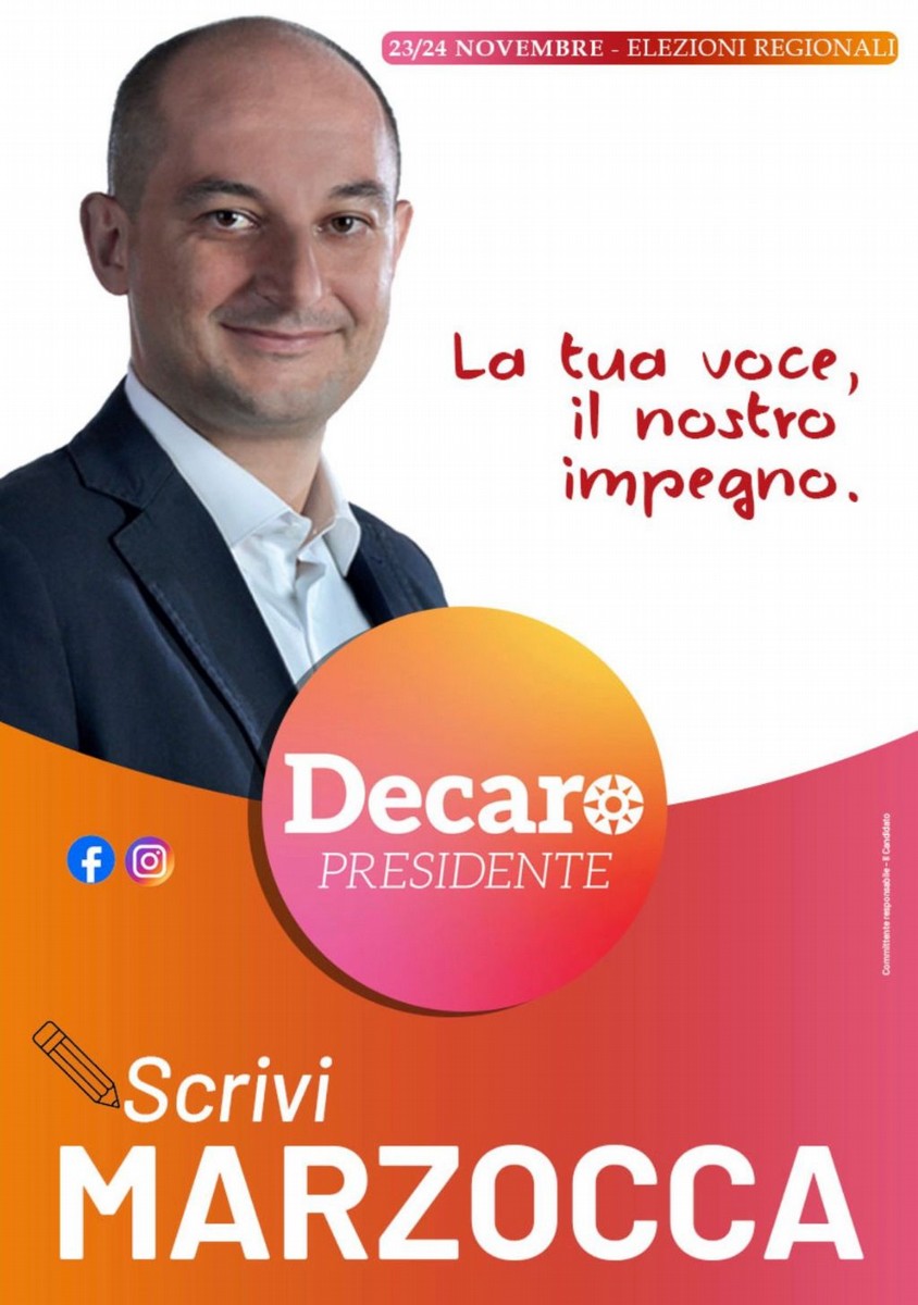 Ruggiero Marzocca, 43 anni, avvocato cassazionista con una lunga esperienza nel diritto previdenziale ed ex Consigliere Comunale, annuncia ufficialmente la propria candidatura alle prossime elezioni regionali del 23 e 24 novembre nella lista Decaro Presidente, a fianco di Antonio Decaro.