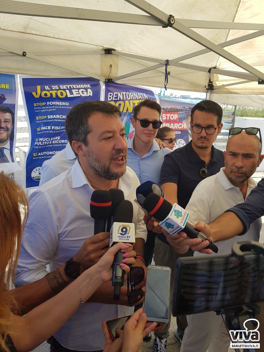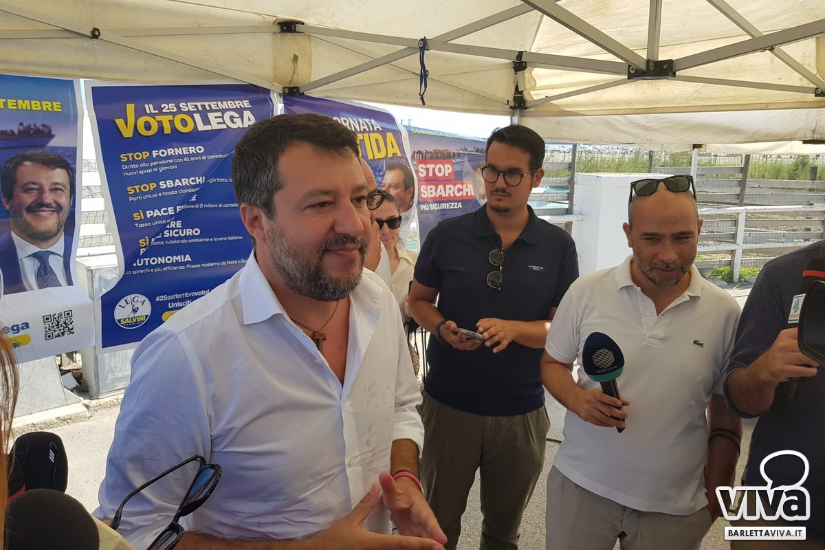 Si è svolto questa mattina sul lungomare Mennea l'incontro con cittadini, simpatizzanti e militanti della Lega: seconda tappa della sua maratona elettorale dopo Foggia, Salvini sarà poi presente a Bari, Polignano a Mare, Carovigno e Ceglie Messapica.