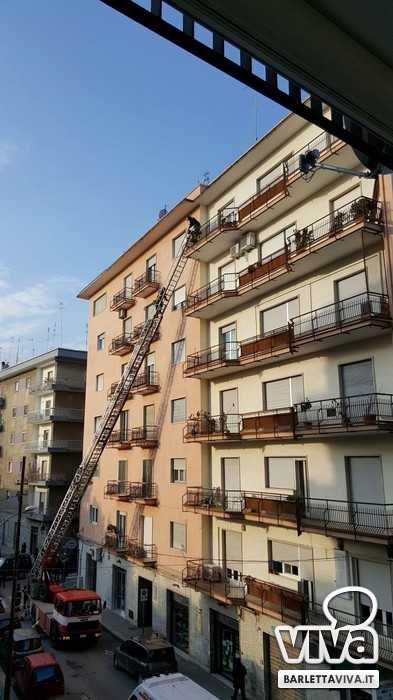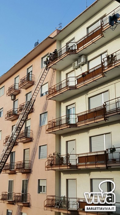 Così sul posto, insieme all'ambulanza del 118, è giunta una squadra dei Vigili del Fuoco di Barletta che, con l'ausilio della scala, sono giunti fino agli ultimi piani dell'edificio e sono riusciti a entrare nell'appartamento dell'anziana donna dal balcone.