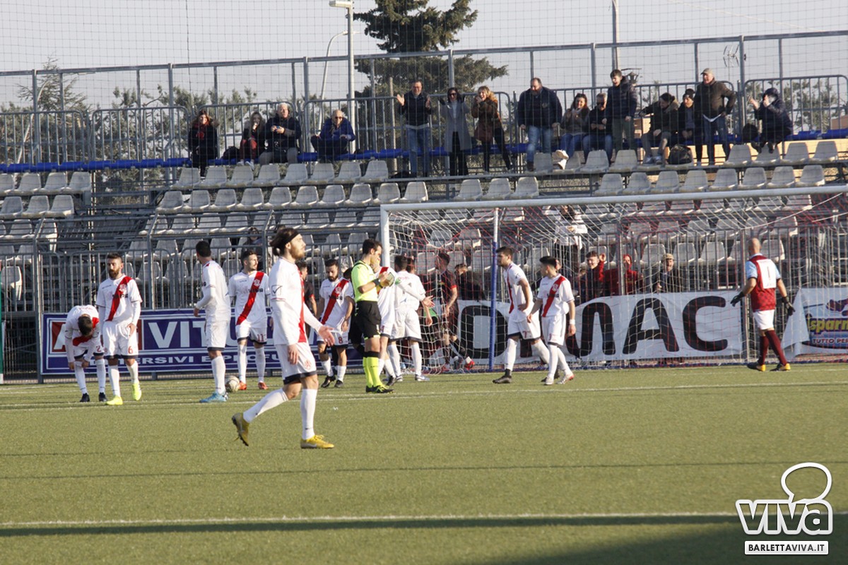 A parziale giustificazione per l'Audace ci sarebbe la mancata concessione a metà ripresa di un evidente calcio di rigore per fallo di mano di un difensore dauno. Ma per onestà intellettuale bisogna tuttavia ammettere che il successo del San Severo ci pare francamente più che meritato vista la maggiore determinazione messa in campo. La gara ha inizio con l'Audace subito vicina al gol. Al 4' Ngracanj dalla destra mette in mezzo, per Di Federico, il quale di testa smarca Albrizio che colpisce in spaccata verso la porta difesa da Domingo che è bravo a respingere. Sul conseguente calcio d'angolo Di Federico, ancora di testa, anticipa Domingo ma la palla è respinta dal palo. Sembrerebbe il preludio a una gara a senso unico ma al 7', a sorpresa, passa in vantaggio il San Severo con un gran destro dalla distanza di Alessandro Morra sul quale nulla può l'estremo difensore barlettano Di Candia. Dopo il gol l'Audace stenta a ritrovarsi e al 24' Di Candia cava letteralmente dalla porta il pallone dello zero a due su una conclusione ravvicinata ancora di Alessandro Morra. Ci si aspetterebbe a questo punto una reazione dell'Audace, ma l'attacco barlettano da la netta sensazione di arrivare al limite dell'area e non sapere cosa fare, tanto che il portiere Domingo non correrà particolari rischi fino al termine della prima frazione.