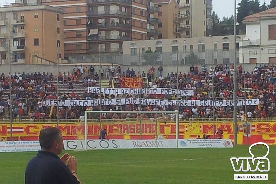 Come il più atroce degli scherzi del destino, il nuovo Barletta ricomincia la sua avventura nello stesso giorno in cui riparte la Lega Pro. Lo fa con uno 0-0 a Vieste in Coppa Eccellenza. Una categoria che il Barletta non merita, ma a cui deve partecipare per scontare gli errori del passato. Si riparte da qui, dai campi della Puglia, da trasferte che troppo spesso saranno vietate ai tifosi biancorossi. Il pareggio della prima uscita stagionale soddisfa, perché arriva a pochi giorni dalla formazione di un gruppo che deve ancora del tutto trovare la sua amalgama e i ritmi partita. È però l'accoglienza riservata al ritorno a casa dai tifosi del Barletta a lasciare sbalorditi. Ieri sera un nutrito gruppo di rappresentanti del Gruppo Erotico si è ritrovato al "Manzi-Chiapulin" per incoraggiare la squadra. Sciarpe, vessilli e fumogeni, una mini-coreografia in piena regola per testimoniare la propria vicinanza ai nuovi beniamini, così diversi dai precedenti ma probabilmente molto più attaccati alla maglia. "Ovunque tu vada, noi ti seguiremo", hanno cantato gli ultras, ed è segno di maturità, di amore viscerale che supera anche le barriere imposte dal cambio di categoria e dai limiti strutturali che gli impianti pugliesi continuano ad avere. Sono – purtroppo – andati, almeno momentaneamente, i tempi di Trieste, Reggio Calabria e Salò. Il messaggio però arriva forte e chiaro: nonostante le categorie, il tifoso barlettano rimarrà sempre lì, a cantare e a trascinare la squadra.