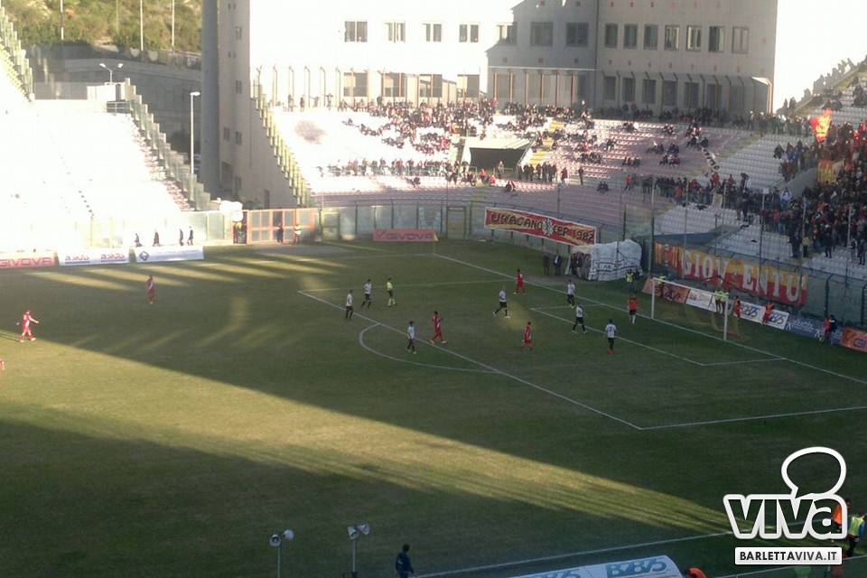 Divisa rossa con striscia diagonale bianca per il Barletta. Out De Rose per squalifica, recuperano Meola e Cortellini, fuori i soliti noti Dell'Agnello e Biancolino. Conferma per il 4-3-3, con Cortellini avanzato in mediana: dentro Regno in difesa e l'ex Brescia va accanto a Legras e Quadri, con il trio Venitucci-Fall-Danti in avanti. Panchina per Palazzolo e Branzani. Tribuna per Gemignani e Kiakis.