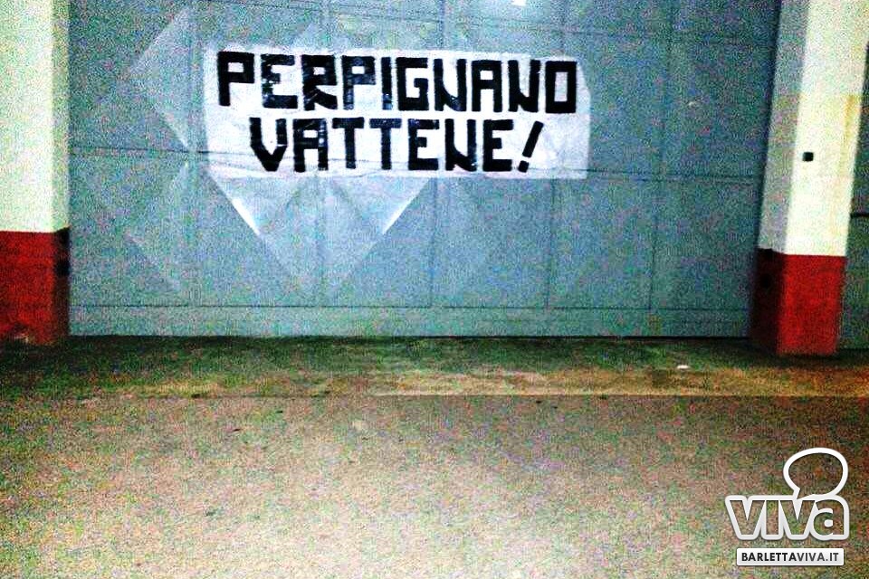 Domani sera scadranno i termini per saldare gli stipendi di febbraio (il Barletta ha già pagato gennaio per scongiurare la messa in mora) e i contributi arretrati da settembre 2014: si tratta della prima di diverse scadenze decisive che separano i colori biancorossi dal 30 giugno, in quelli che si prospettano come due mesi e mezzo caldi quanto determinanti per le sorti del calcio professionistico nella Città della Disfida. Tra le certezze da annoverare c'è l'ormai consumata frattura tra buona parte della piazza, ivi compreso la tifoseria organizzata, e il presidente Giuseppe Perpignano: un rapporto avviato sui binari di reciproca fiducia in estate, passato per i marosi dell'autunno e consumato da un inverno di mancate parole date nei confronti degli innamorati del Barletta Calcio. Ieri sera si è vissuta l'ennesima prova del distacco tra le parti: uno striscione recante la scritta "Perpignano vattene", già presente in ogni trasferta biancorossa nel Settore Ospiti da Benevento in poi, è apparso dopo le 22 sul cancello d'ingresso dello stadio "Puttilli" e vi è rimasto per meno di due ore, prima di essere staccato dalle porte e appallottolato nella zona antistante l'accesso. Un attestato di sfiducia in piena regola che ribadisce una rottura ormai nota. A integrare il concetto un altro striscione, recitante "Barletta merita l'imprenditoria barlettana": un appello a chiare lettere nei confronti della città.