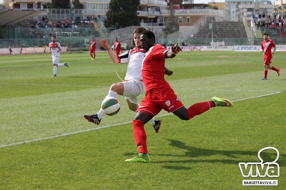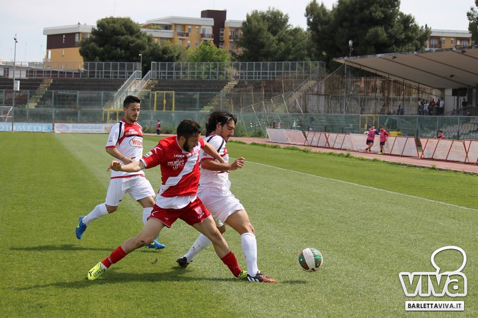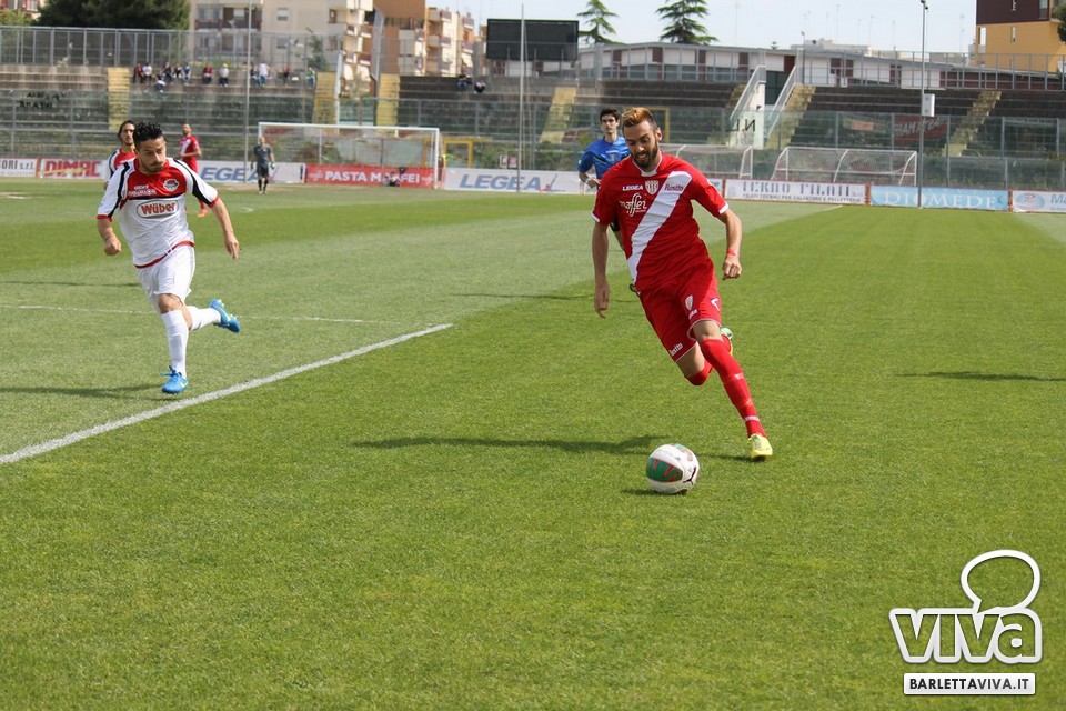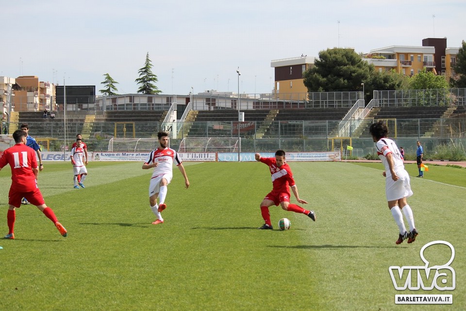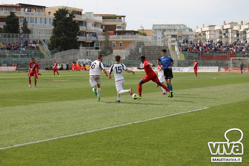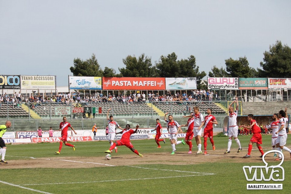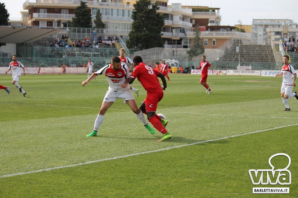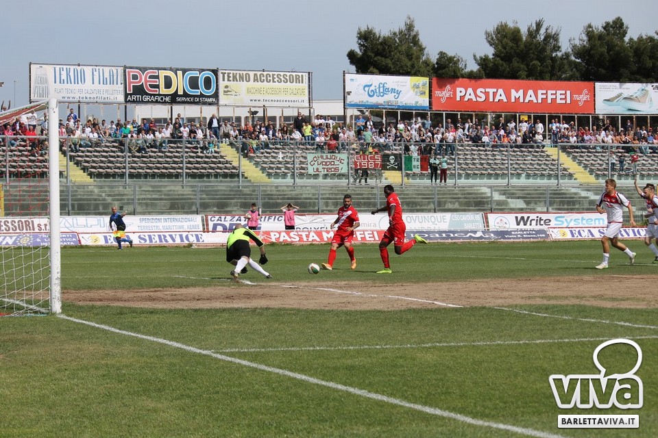 Il derby più atteso dell'anno si è esaurito con una coda amara in casa Barletta Calcio: ieri pomeriggio al "Cosimo Puttilli" è passato il Foggia, con uno 0-1 maturato grazie a un calcio di punizione dai 25 metri realizzato dal mancino di Vincenzo Sarno a 20 minuti dal termine. Dopo un primo tempo avviato con le occasioni capitate a Fall, De Rose e Turchetta da una parte e a Iemmello, Agnelli e Cavallaro su sponda rossonera, la ripresa ha portato in dote un calo di ritmi e tensione, che ha agevolato gli ospiti di mister De Zerbi, abili a portare a casa i tre punti e a legittimare il vantaggio con le occasioni avute da Iemmello e Sicurella. Per il Barletta di Ninni Corda (espulso nel finale dall'arbitro Boggi per proteste) seconda sconfitta consecutiva, che non influisce sulla classifica che oggi recita quota 47 punti ma pesa sulla storia di blasone e tradizione che fa da corollario alla sfida contro i satanelli. In attesa dell'ultimo atto stagionale in quel di Ischia, riviviamo le (poche) emozioni riservate dal derby negli scatti fotografici realizzati e concessi da Giuseppe Savino jr.:
