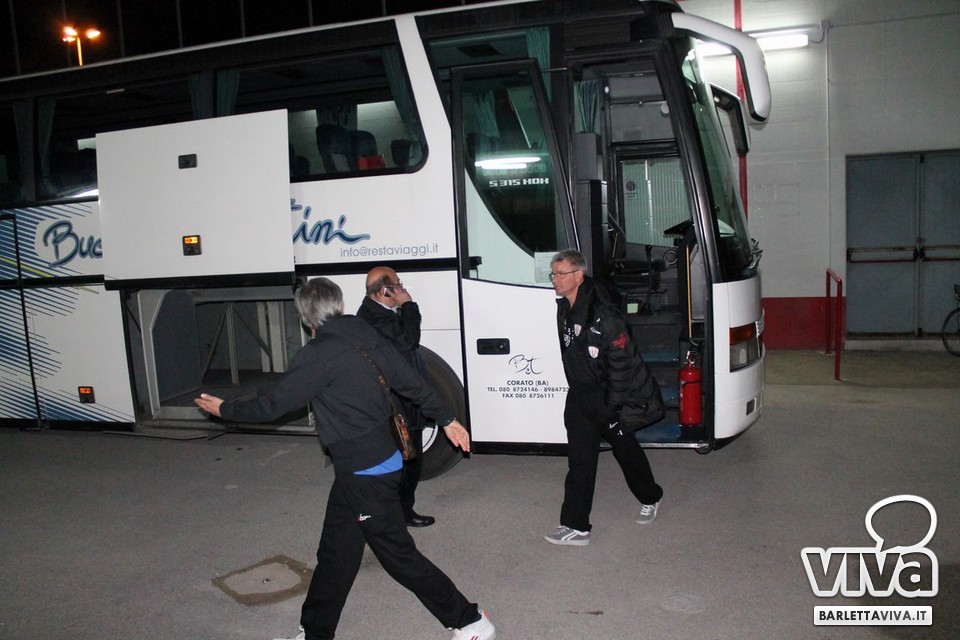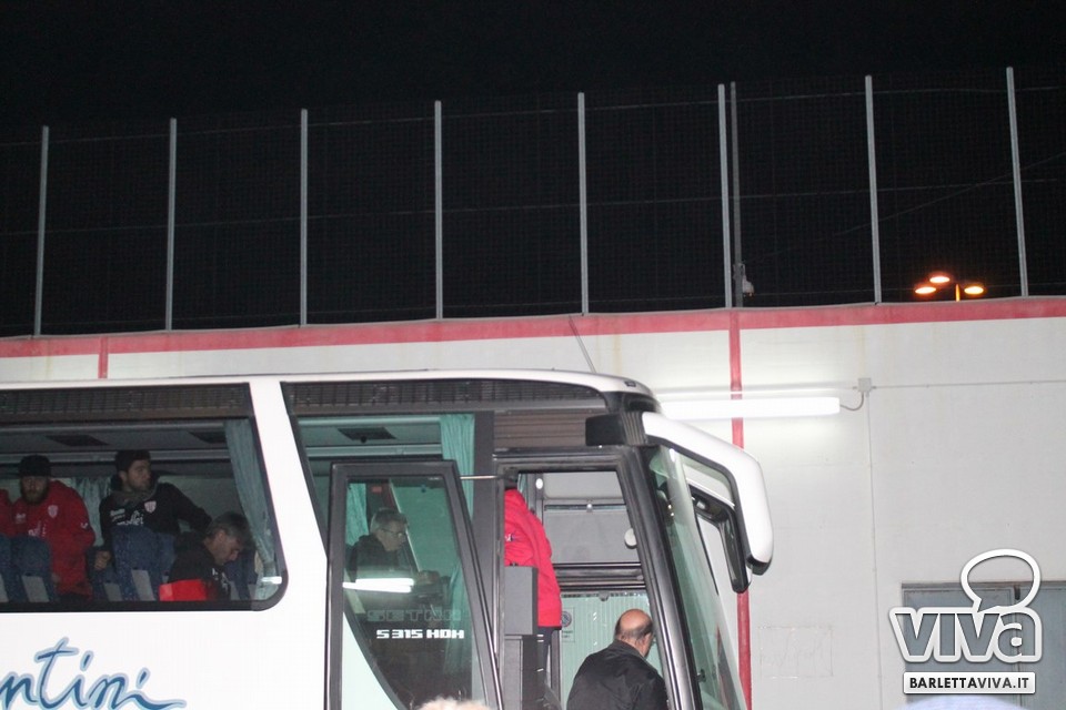 Un tuffo al cuore, una piazza che ti spinge verso quella che è vissuta in città come la partita dell'anno. Questo pomeriggio, intorno alle 18, ha avuto il via dal "Cosimo Puttilli" l'avventura del Barletta Calcio in direzione-Foggia, dove domani pomeriggio (fischio d'inizio alle 16) Liverani e compagni saranno ospiti allo "Zaccheria" dei Satanelli, sorpresa del girone C di Lega Pro con 31 punti all'attivo e una sola sconfitta in un cammino di 17 turni. Di fronte domani ci saranno due formazioni che nelle ultime due partite hanno ottenuto importanti vittorie, galvanizzate da ambienti che le sostengono: i tifosi biancorossi questo pomeriggio hanno caricato con canti di sostegno e applausi il gruppo guidato da mister Marco Sesia, chiamato a concludere il 2014 con un bel risultato, in una trasferta dove saranno circa 500 i sostenitori del Barletta presenti, con 468 tagliandi venduti per il settore "Ospiti". Con il report video presente sulla pagina Facebook di BarlettaViva e le foto allegate, riviviamo il pomeriggio biancorosso. Intanto la missione-Foggia ha avuto il via.