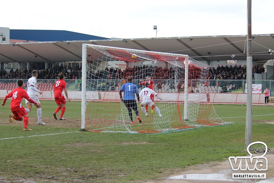 Porta a casa soltanto un punto il Barletta dal match contro la Reggina. Al "Puttilli", il classico Barletta "double face" prima concede il vantaggio ai granata, poi ingrana la marcia giusta, ribaltando il risultato nel secondo tempo con la perla di Cortellini e la perfetta balistica di Radi. A fissare il risultato sul definitivo 2-2 è la sfortunata deviazione di Liverani sulla conclusione di Viola. Il pirotecnico pareggio contro gli uomini di mister Alberti fa salire a dieci il numero dei risultati utili consecutivi, ma in casa biancorossa resta l'amaro in bocca per altri due punti che potevano essere alla portata del collettivo guidato da Marco Sesia. Riviviamo le emozioni del pareggio mattutino tra Barletta e Reggina attraverso la fotogallery firmata da Giuseppe Savino Jr.