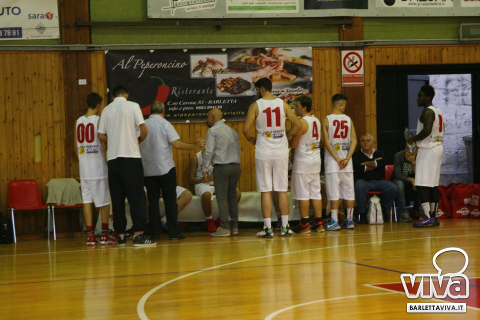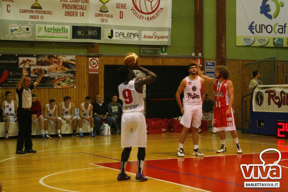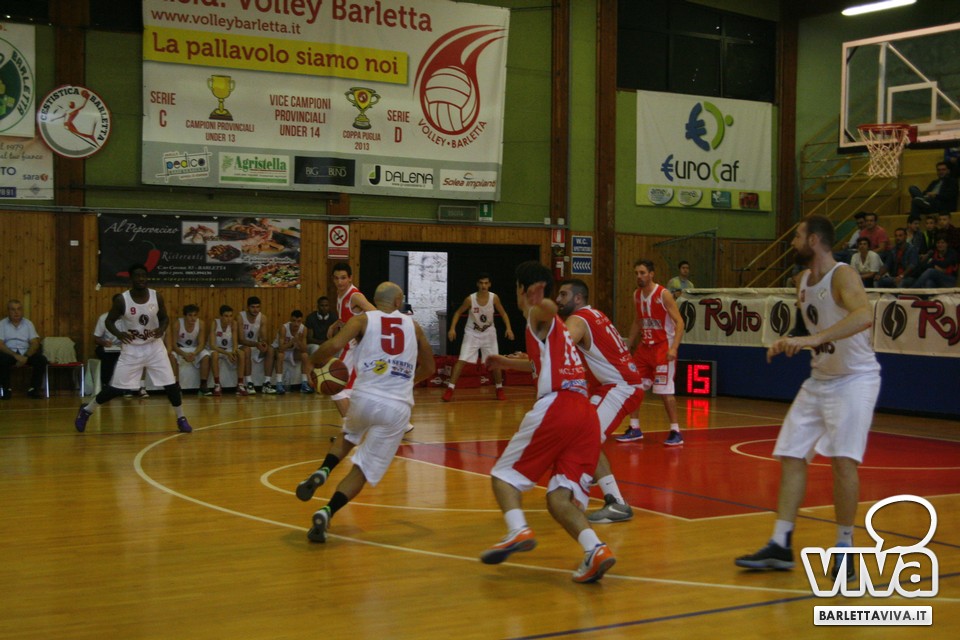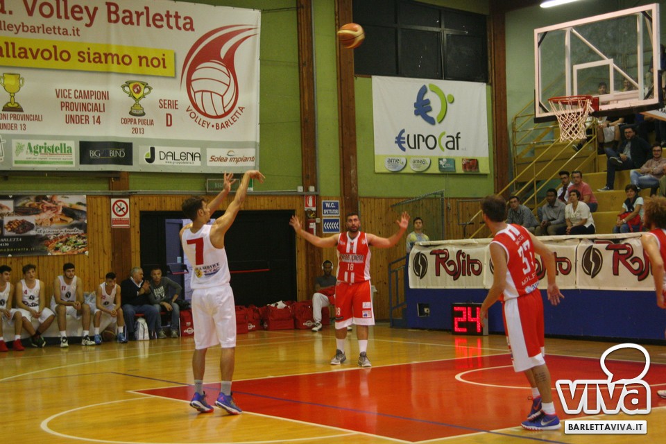 Coach Curci parte in quintetto con Ashley, Balducci, Rainis, Degni e Defazio; mentre Azzolini gli risponde con Maggi, Azzollini, Sallustio, Murolo e Del Rosso. Partono subito forte i padroni di casa, trovando il canestro e opponendo alla squadra avversario un'ottima difesa. Il primo quarto si chiude sul risultato di 15-12, con Balducci che sulla sirena mette a referto una tripla. Nel secondo periodo l'equilibrio regna sovrano ed entrambe le compagini si equivalgono sul parquet: al riposo lungo si va sul 29-29. La Cestistica parte subito forte nel secondo tempo con i canestri di Balducci e Ashley, ma Molfetta non sta a guardare e in un amen infligge ai biancorossi un parziale di 8-0 che di fatto sposta gli equilibri. Maggi e compagni riescono a tenere in mano il pallino del gioco, rispondendo canestro su canestro ai tentativi di rimonta. A nulla servono le fiammate finali del solito Nathan Ashley, il finale dal "PalaMarchiselli" è di 58-70.