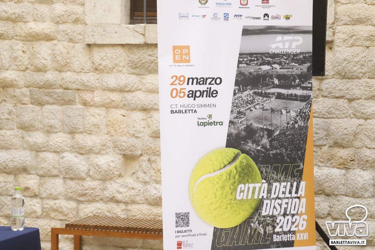 Alla presenza degli assessori Massimiliano Di Leo (sport), e Oronzo Cilli (cultura e grandi eventi), giunti in rappresentanza dell'amministrazione comunale di Barletta, del vice presidente nazionale della FITP (Federazione Italiana Tennis e Padel) Isidoro Alvisi, e di Massimo Di Muro di FITP Puglia, si è svolta nella mattinata di oggi, presso Palazzo della Marra, la conferenza stampa di presentazione della ventiseiesima edizione del Challenger ATP 75 "Città della Disfida" "Trofeo Lapietra", che avrà luogo presso il Circolo "Hugo Simmen", con gli incontri del tabellone principale,a partire da domenica 29 marzo, con gli incontri di qualificazione, fino a domenica 5 aprile, con la finale del singolare che avrà inizio alle ore 15, e che avrà quest'anno un montepremi di 97.640 Euro.