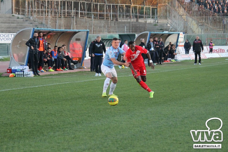 Vittoria, sorrisi e scacco matto alla capolista. Il Barletta bissa il successo di Lamezia Terme e lo fa superando di misura al termine di una grande prova la Salernitana: ieri pomeriggio i campani sono caduti sul terreno del "Cosimo Puttilli", in una partita decisa da un bellissimo gol di Fall al 38' del primo tempo. Il senegalese si è sbloccato anche davanti ai propri beniamini, concedendo il bis e il Barletta ha ripetuto portando a casa un'insperata seconda vittoria consecutiva, che fa da gran bel viatico per il derby della prossima settimana allo "Zaccheria". Un palo per parte (Danti e Franco) e tanta grinta in campo, per una vittoria che allontana i ragazzi di Sesia dalla zona-playout a quota 19 punti. Gli uomini di Menichini restano primi con 37 punti, ma cedono per la prima volta in trasferta, in una sfida che riviviamo attraverso gli esclusivi scatti fotografici firmati da Giuseppe Savino Jr.:
