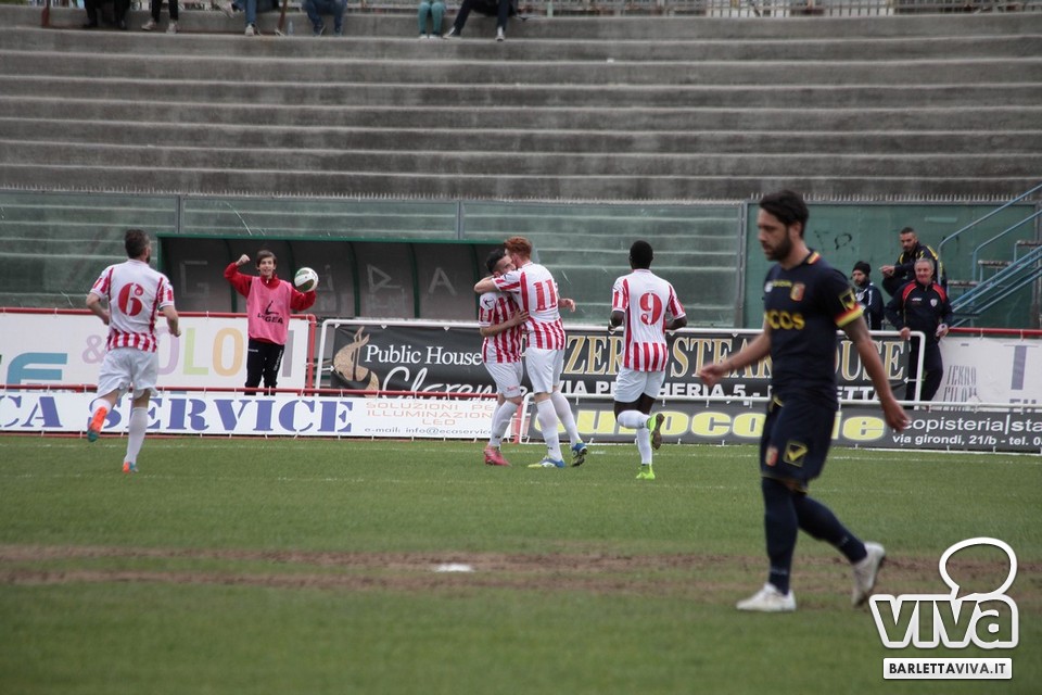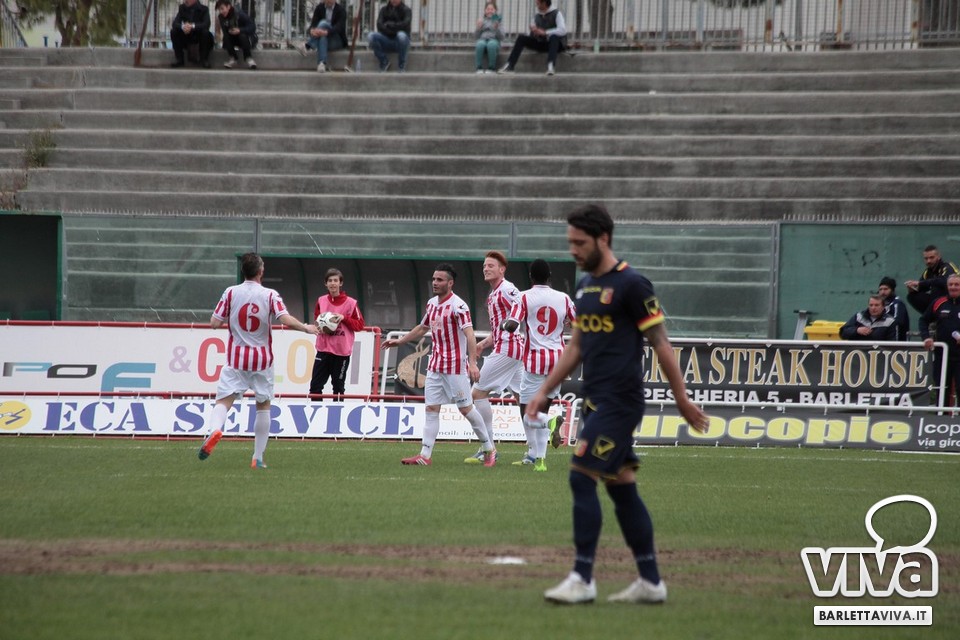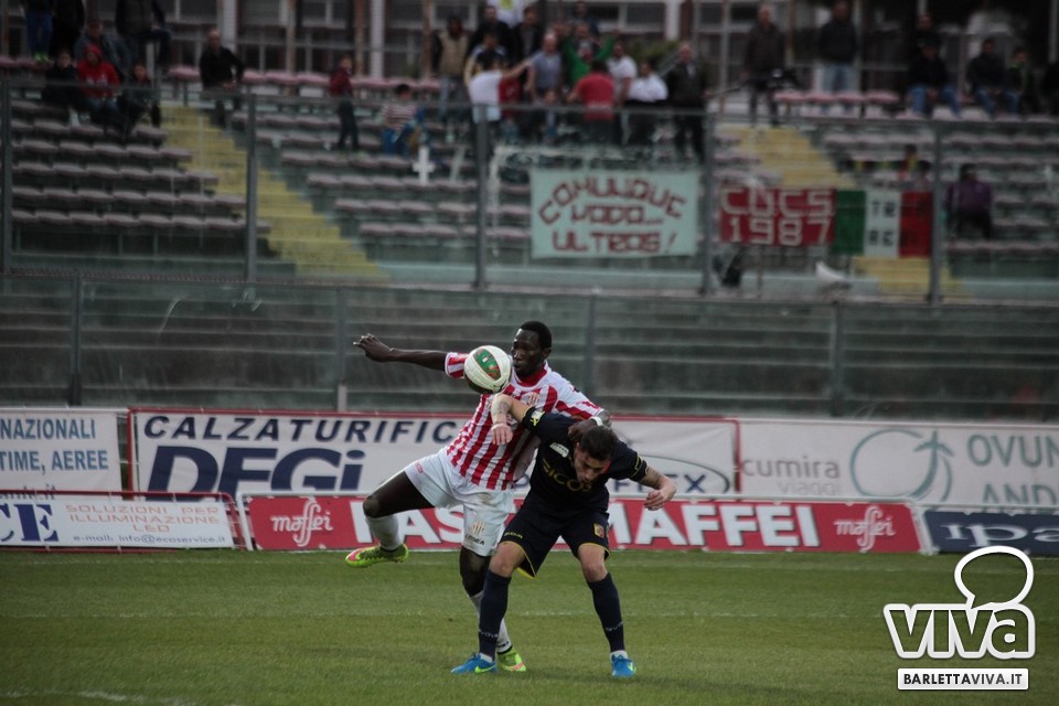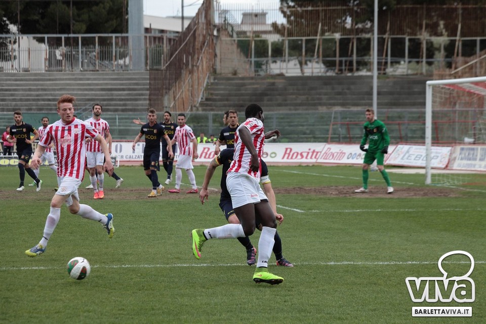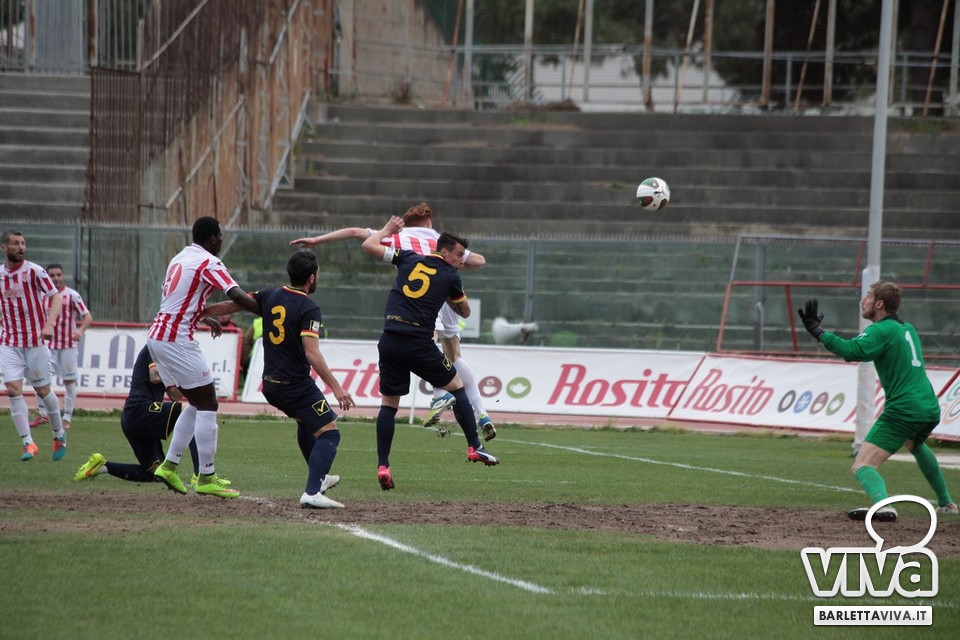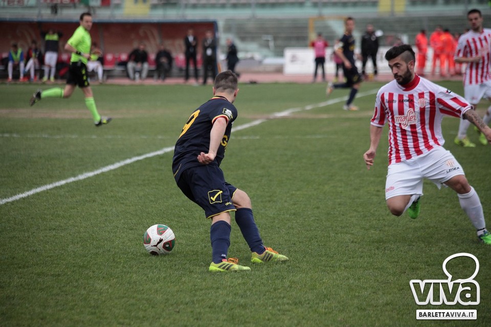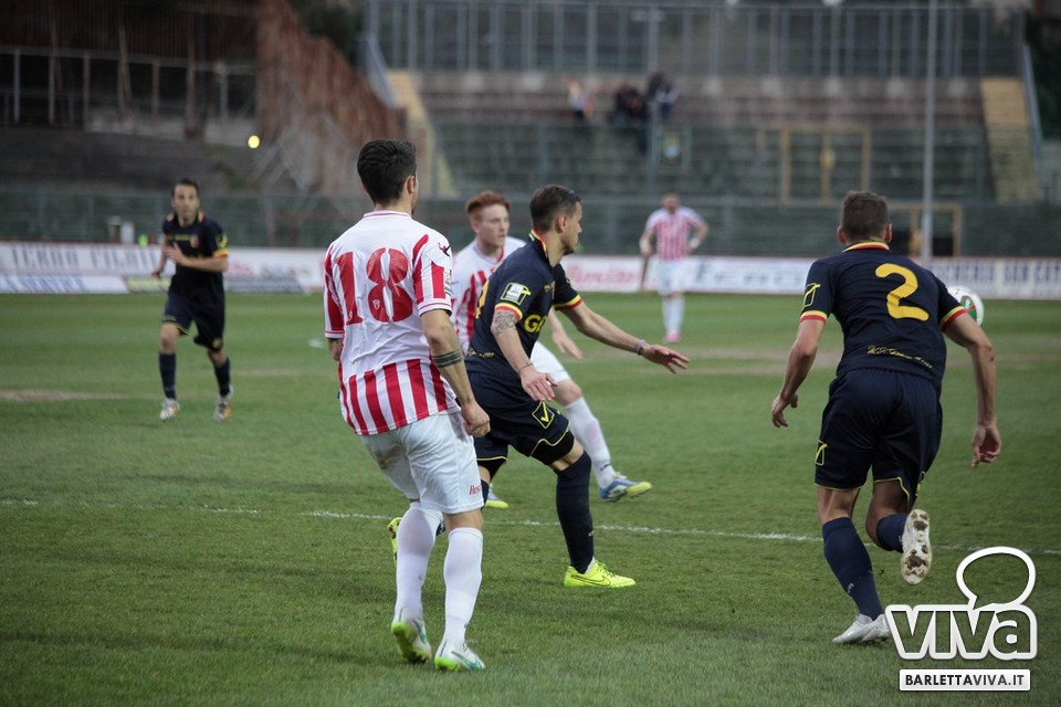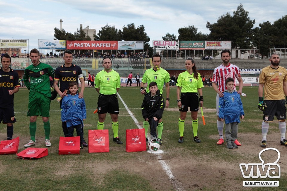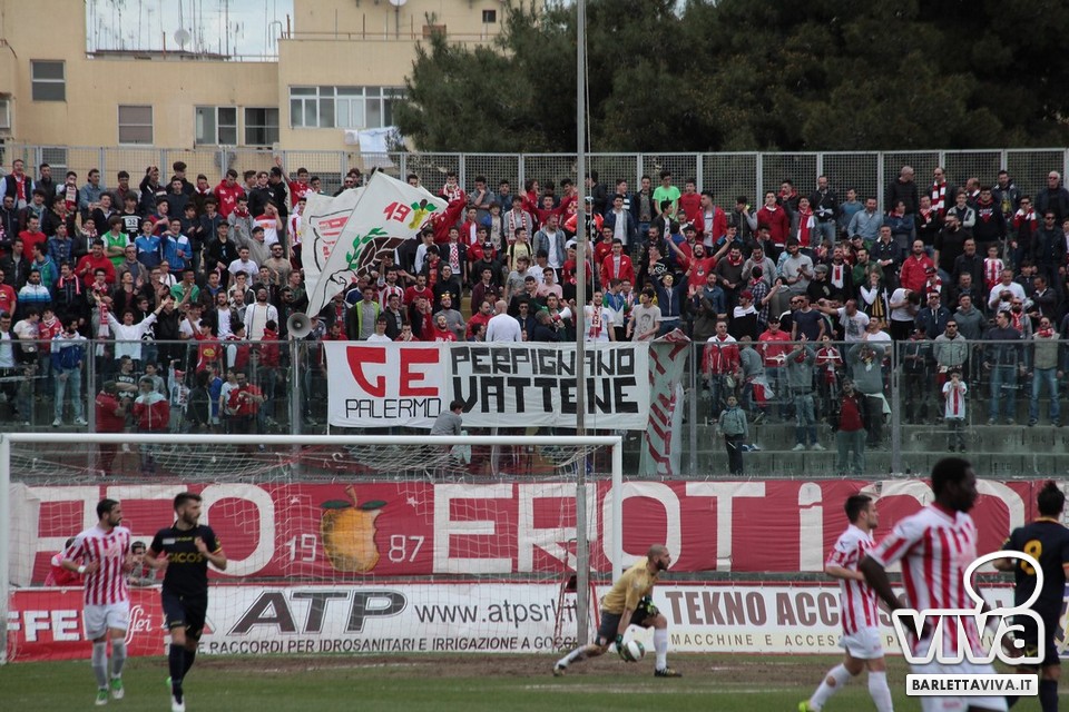 Il pareggio sembrava il risultato più probabile, stante la buona condizione di classifica di Barletta e Catanzaro, e così è stato ieri pomeriggio sul prato del "Cosimo Puttilli", nel match valevole per il turno numero 33 del campionato di Lega Pro, girone C. Ci hanno creduto di più i biancorossi, passati in vantaggio con un cross di Guarco spinto in rete da una stoccata di Ingretolli, ma sfortunati nella deviazione con la quale Radi ha spedito un innocuo cross da destra di Daffara alle spalle di Liverani. Sul punteggio di 1-1, Fall e compagni hanno impensierito in un paio di occasioni Bindi, sfiorando il bersaglio grosso, ma gambe stanche e fame di punti in calo hanno influito sul pareggio finale. Barletta salito a quota 43 punti, Catanzaro a 48, con una coda di stagione che farà da preludio al raggiungimento dell'obiettivo-salvezza per i biancorossi. Il ritorno in campo è programmato l'11 aprile in quel di Aversa: nel mezzo le festività pasquali, che i tifosi barlettani vivranno sperando di trovare nell'uovo novità societarie. Intanto, riviviamo le (poche) emozioni di Barletta-Catanzaro 1-1 nella photogallery "griffata" dagli obiettivi di Foto Ri.Co. (via Mariano Sante, 26, Barletta):
