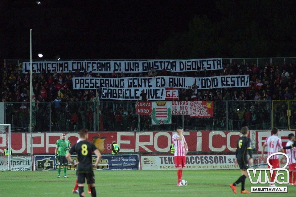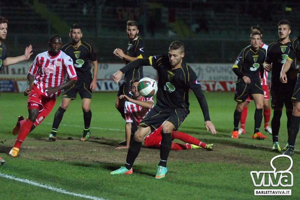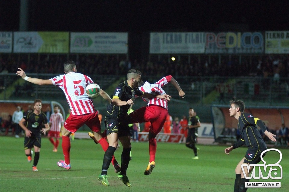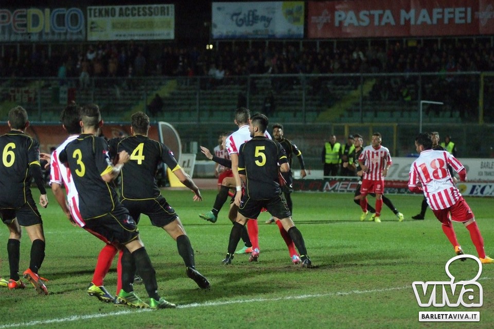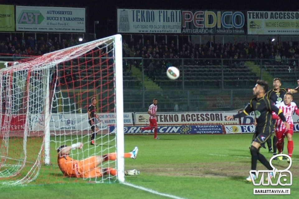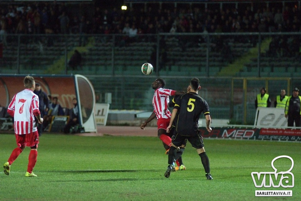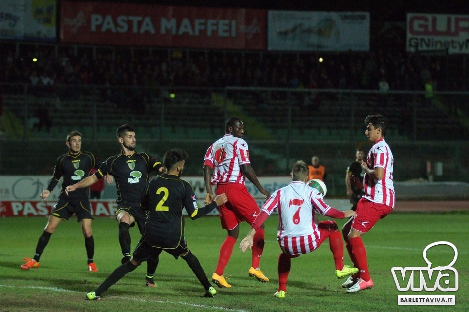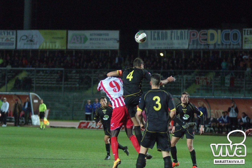 Se l'intento era quello di approfittare della cornice domenicale e dell'assenza della serie A-complici le qualificazioni a Euro 2016 e la Nazionale azzurra in campo in serata-per offrire un pomeriggio di spettacolo e sorrisi, beh, non è andato complessivamente a buon fine. Barletta-Melfi 0-0, match giocato ieri sera al "Cosimo Puttilli" per la 13^ giornata del campionato di Lega Pro, girone C, non ha offerto tante emozioni: ha prevalso l'equilibrio, con i lucani di Dino Bitetto, ex gradito dalle parti di via Vittorio Veneto, come il coro riservatogli dai tifosi biancorossi ha testimoniato, abili a imbrigliare le giocate di Floriano e compagni, pericolosi solo a folate e perlopiù con conclusioni dalla distanza. Risultato giusto, con più di qualche fischio piovuto dagli spalti al triplice fischio, a corredo di un match che riviviamo attraverso gli scatti fotografici gentilmente concessi da Foto Ri.Co: