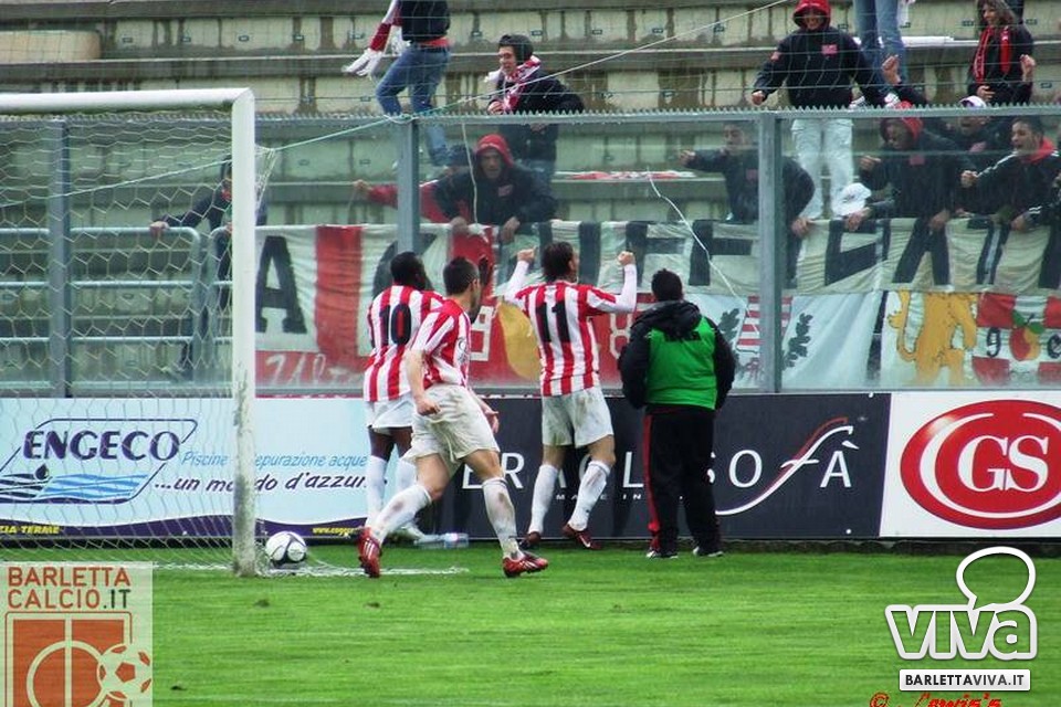 «Fu una partita molto sofferta, che iniziai dalla panchina. A metà ripresa, se non ricordo male, presi il posto di Caracciolese, che aveva messo a segno l'1-0 (in foto l'esultanza, ndr). Eravamo sotto 2-1. La partita era quasi finita, mancavano pochi secondi, quando Rizzi crossò al centro e di piatto misi in rete, correndo poi verso i nostri tifosi che erano presenti anche in una trasferta così lunga». Nicolas Jesus Laviano, professione centravanti o "puntero" per dirlo all'argentina, per i tifosi biancorossi "il guerriero del gol", ha un ricordo limpido del 2-2 con il quale il Barletta uscì dal terreno di gioco di Lamezia Terme il 5 aprile del 2009. In palio vi erano punti-salvezza preziosi nel girone C di Seconda Divisione, archiviato poi dai ragazzi di Sanderra con un brillante settimo posto. Domenica i ragazzi di Sesia saranno di scena proprio al "D'Ippolito", nella sfida valevole per la 16^ giornata del girone C di Lega Pro.