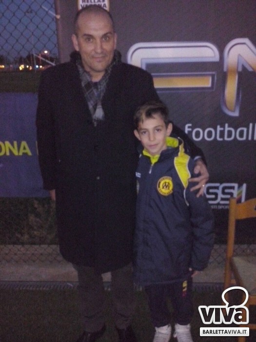 Un barlettano verso i settori giovanili della massima serie. Parliamo del giovanissimo Ruggiero Napoletano (in foto con Luigi Beghetto), baby-talento classe 2003 dell'Asd Medaglie d'Oro Barletta: durante un torneo disputato a Monopoli nello scorso weekend, che ha visto 22 società pugliesi affiliate all'Hellas Verona sfidarsi presso il campo Carrieri ed il centro sportivo Cala Paradiso, i talent-scout scaligeri hanno messo gli occhi sull'11enne barlettano, già da qualche settimana osservato speciale del Napoli. Napoletano ha impressionato positivamente con il responsabile del settore giovanile del Verona Claudio Calvetti, il responsabile affiliazioni Sergio Guidotti ed il capo osservatori Luigi Beghetto.