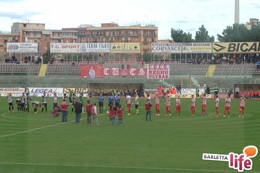 Il finale si gioca a riflettori accesi, ma al Barletta manca la luce: prova ad accenderla Zigon, ma il suo destro si spegne di poco a lato. Un minuto e Picci va vicino al bersaglio: il suo stacco termina di poco a lato su cross del solito Cane. Chiude tra gli applausi la sua prova Vannucchi, che fa posto a Romeo al 36'. Primo acuto di Cicerelli al 40': salta Peverelli a sinistra, si accentra ma il suo destro termina alto sulla traversa di Gazzoli. Nel finale si gioca in un clima surreale, misto di silenzio e contestazione: ci provano Ilari, Pippa e anche Zigon in rovesciata, ma dopo tre minuti di recupero cala il sipario. Quarto ko interno dell'anno e Barletta ancora alla ricerca di sé stesso.