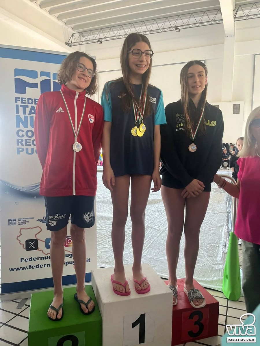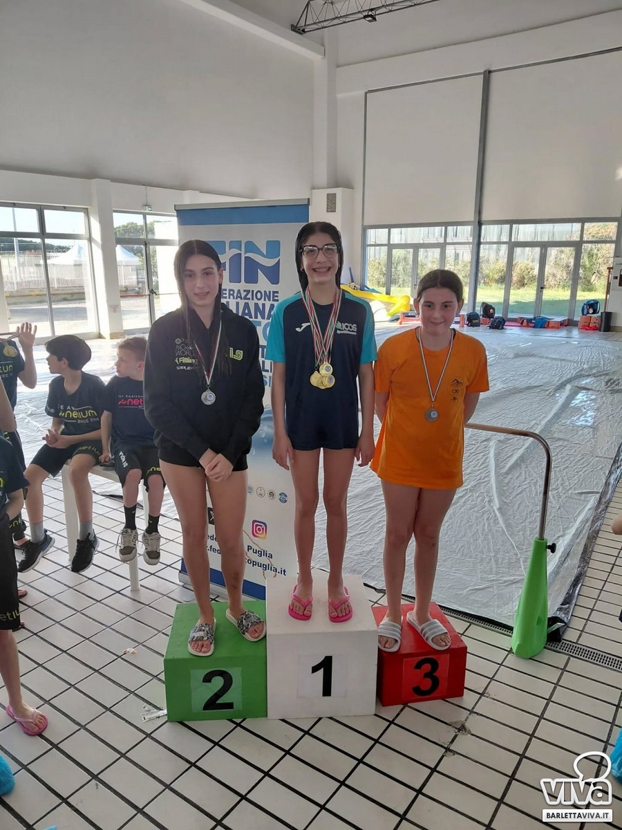 Un fine settimana di nuoto ed emozioni, con le finali regionali Esordienti A, disputate a Monopoli nel weekend, che hanno regalano grandi soddisfazioni e ottimi risultati per i giovani atleti del Centro Sportivo Lig 2.0 di Barletta. «Un bottino importante per i nostri ragazzi, motivo di orgoglio per il Centro Sportivo Lig - spiegano dal centro barlettano - Partiamo dagli splendidi podi conquistati da Aurora (classe 2014): argento negli 800 stile libero e due combattutissimi terzi posti nei 400 stile libero e nei 100 rana, con ulteriori miglioramenti dei suoi personali nelle altre specialità.