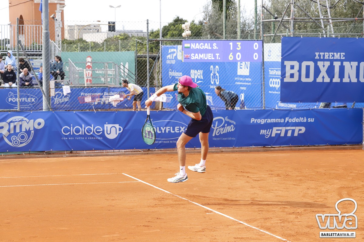 Poi però Samuel riesce a rientrare pian piano in partita e, complice forse un fastidio muscolare alla coscia destra di Nagal, riesce ad arrivare più in palla nei games decisivi, restituendo nel nono gioco il break messo a segno da Nagal nel secondo, per poi portare l'avversario al tie break, dove Samuel riesce ad aggiudicarsi secondo set e incontro.