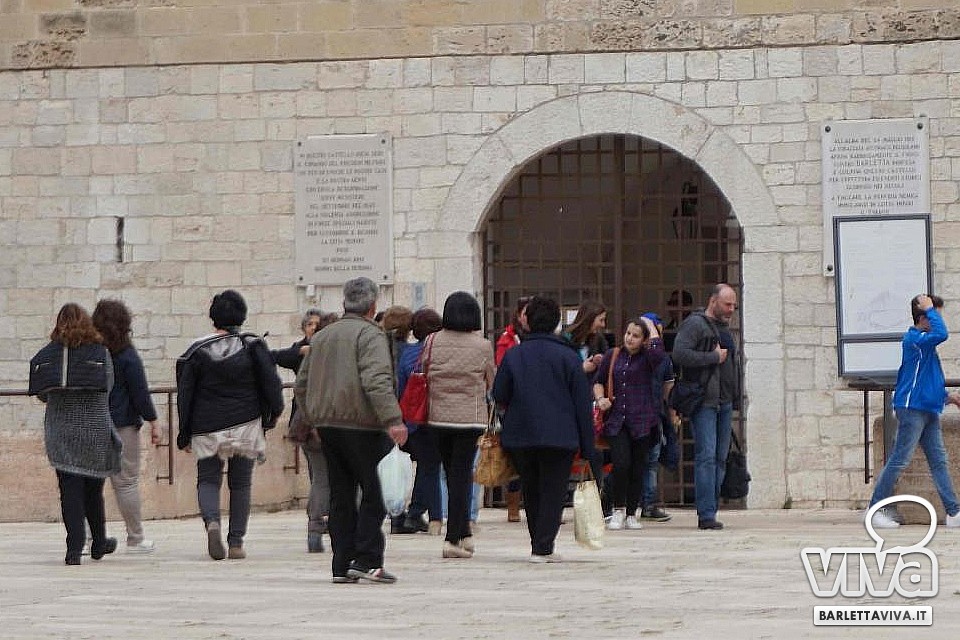 «Non ho mai visto così tanti turisti come quest'anno nel periodo primaverile, il boom è dovuto anche grazie alla classifica stilata da un noto network televisivo che ha inserito tra i 20 castelli più belli d'Italia il castello di Barletta. Vi assicuro che il 90% dei turisti viene nella nostra città per vedere il castello, ebbene il nostro castello è chiuso per lavori e mi trovo spesso davanti alle immagini che vedrete quasi sempre ogni volta che passo dai paraggi dell'entrata del castello. Io mi chiedo, ma non era meglio fare i lavori con termine prima del periodo delle vacanze culturali? Periodo che va da marzo sino alla fine di maggio? Se ho letto bene i lavori avrebbero dovuto essere ultimati già a metà febbraio, dato che la durata era di 4 mesi e l'inizio lavori sono cominciati il 14 ottobre del 2015, come da foto che vi allego. Nelle restanti foto si vede la sorpresa e la delusione dei turisti (anche derisione) per la non possibilità di accesso.