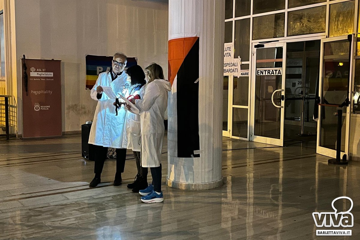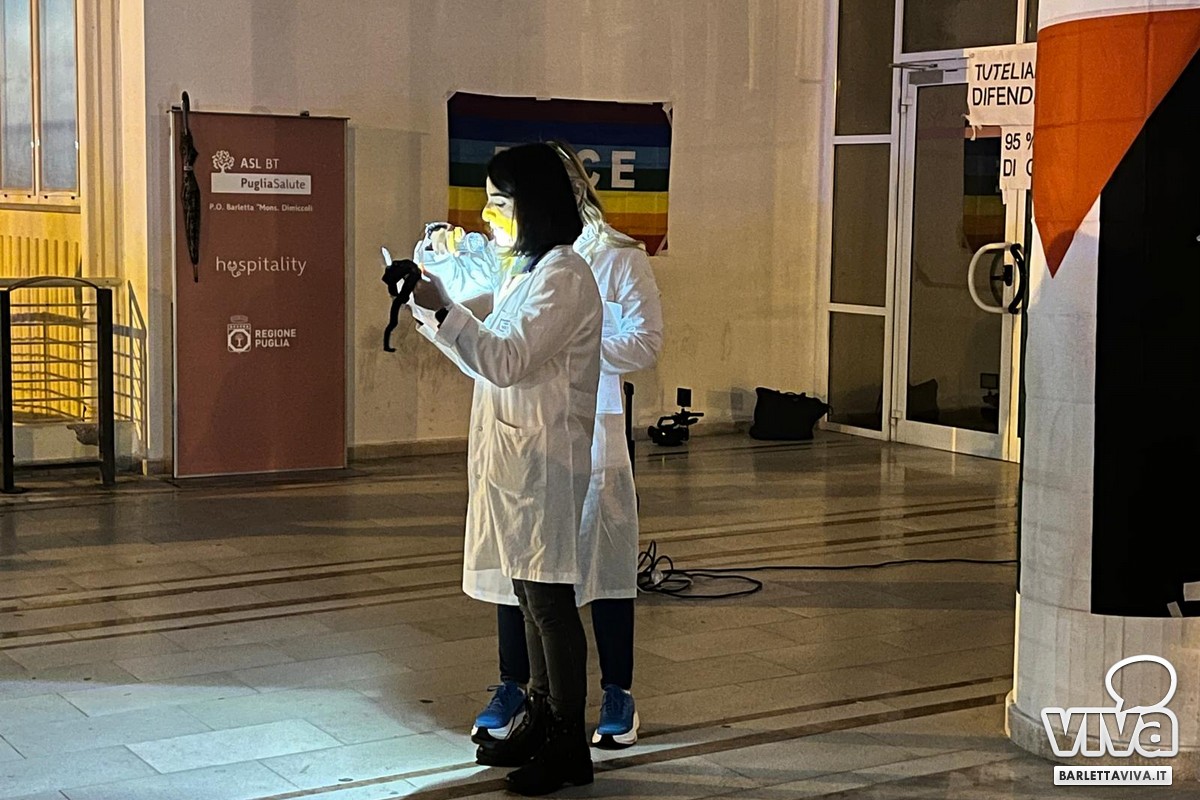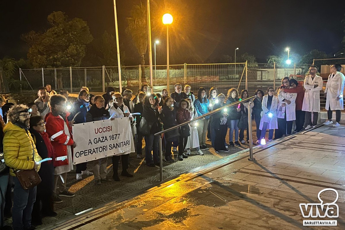 Ieri sera la manifestazione ha coinvolto anche il personale sanitario barlettano per essere vicini al popolo palestinese