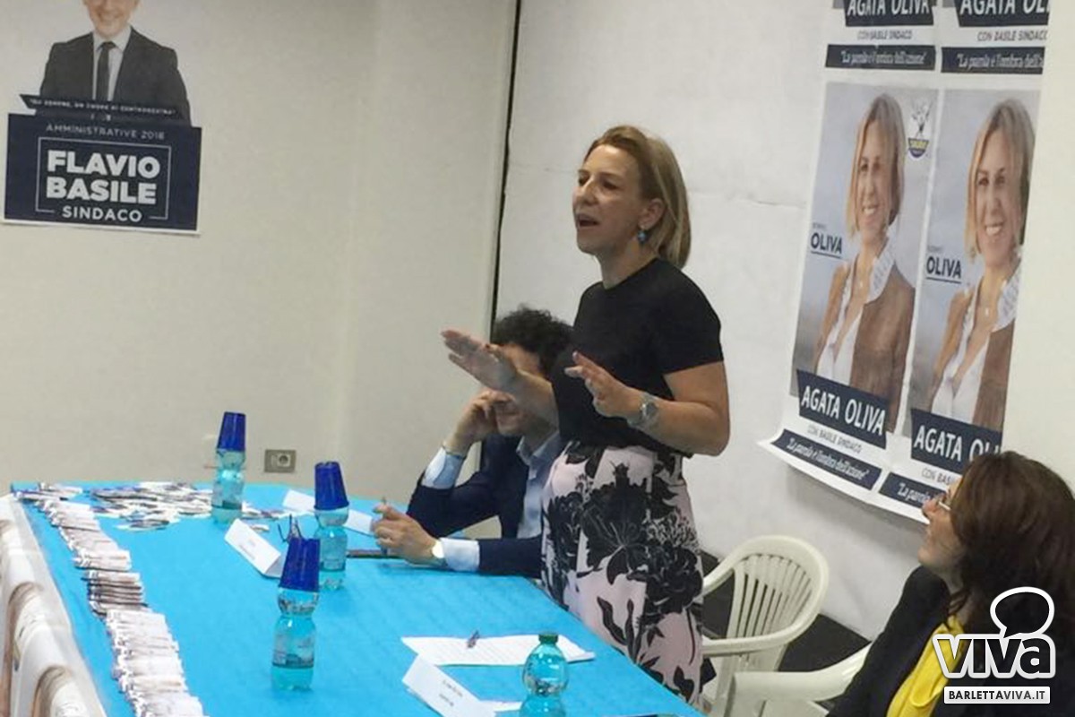 «La sua qualità più importante è l'autenticità». Così è stata presentata a cittadini, amici e sostenitori Agata Oliva, candidata al consiglio comunale di Barletta alle prossime elezioni amministrative nella lista della Lega con Salvini. All'incontro che si è svolto ieri sera presso il comitato elettorale di via Monfalcone (angolo via Alvisi) erano presenti l'onorevole Anna Rita Tateo, il commissario cittadino della Lega e il candidato sindaco di riferimento del partito di Salvini Flavio Basile, per presentare e sostenere la candidata consigliera, oltre a tanti amici e sostenitori, tra cui l'assessore alle Politiche Sociali di Andria Francesca Magliano.