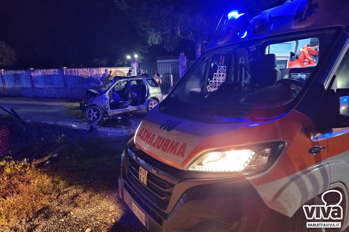 Intervento questa notte per una equipe sanitaria del 118 di Barletta a causa di un incidente in via Andria in territorio barlettano. Un'utilitaria per cause in corso di accertamento ha terminato la sua corsa a centro strada dopo aver impattato con un muretto di recinzione di una abitazione.