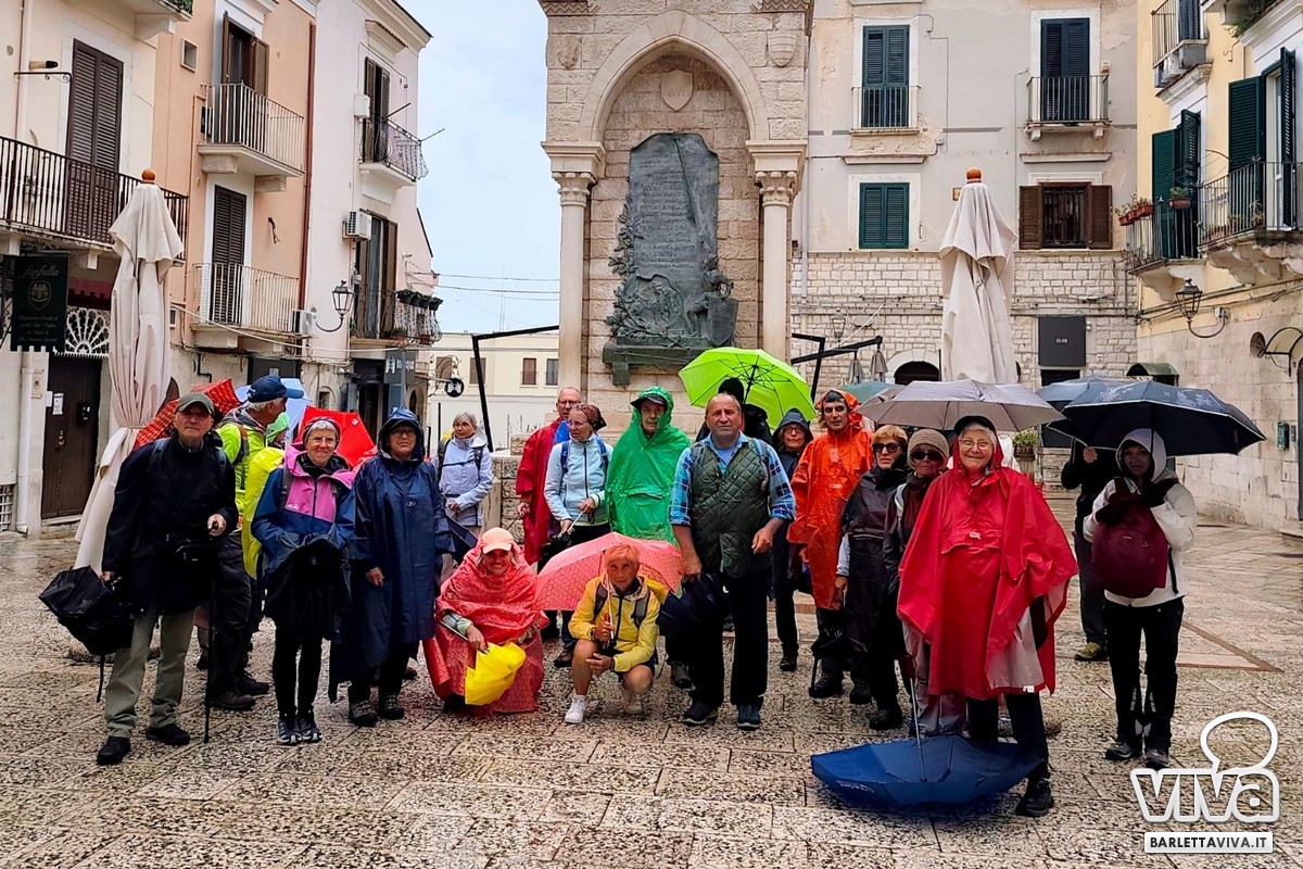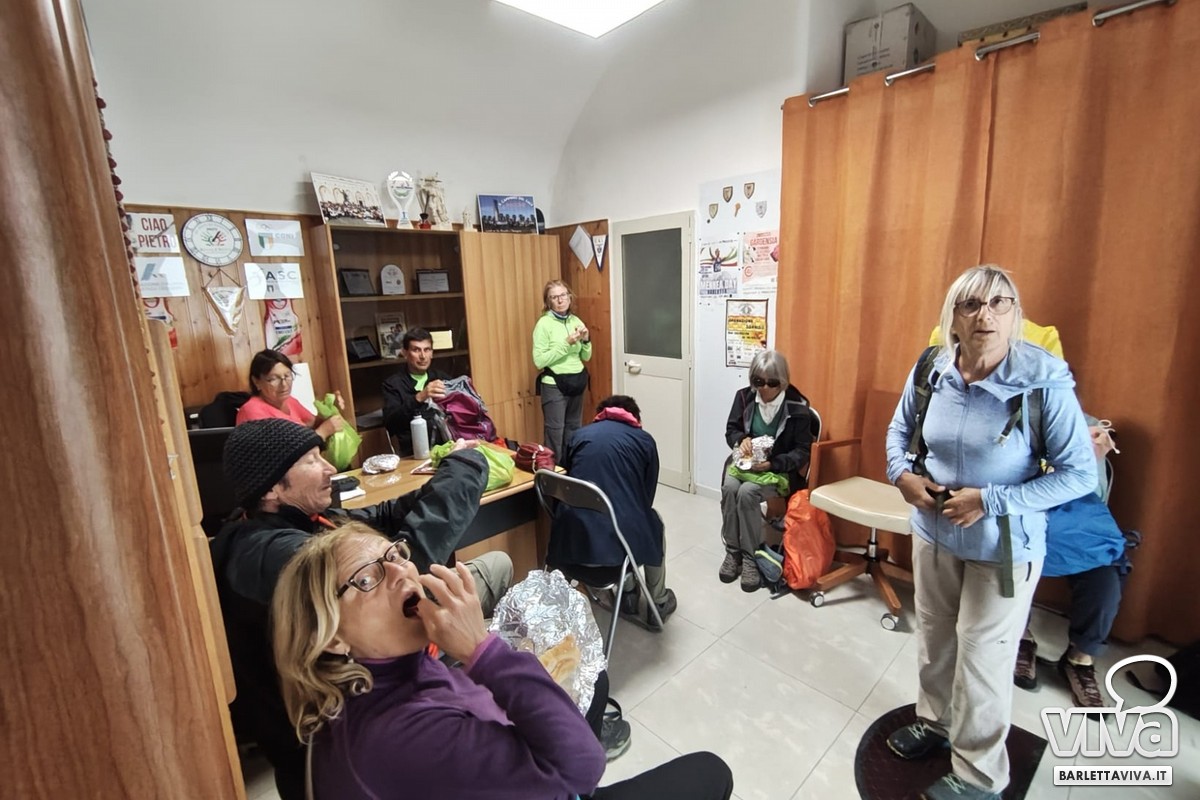 Mercoledì scorso Barletta ha vissuto una significativa giornata all'insegna dell'accoglienza e della condivisione lungo la Via Francigena Litoranea. A raccontarlo è Ruggiero Graniero, presidente degli Amici del Cammino, che ha guidato l'iniziativa. «Circa trenta pellegrini provenienti dalla Brianza sono transitati nella nostra città e noi eravamo lì ad aspettarli. Nonostante la pioggia battente, abbiamo aperto le porte della nostra sede, offrendo loro un tetto per consumare il pranzo al riparo e in serenità», spiega Graniero.