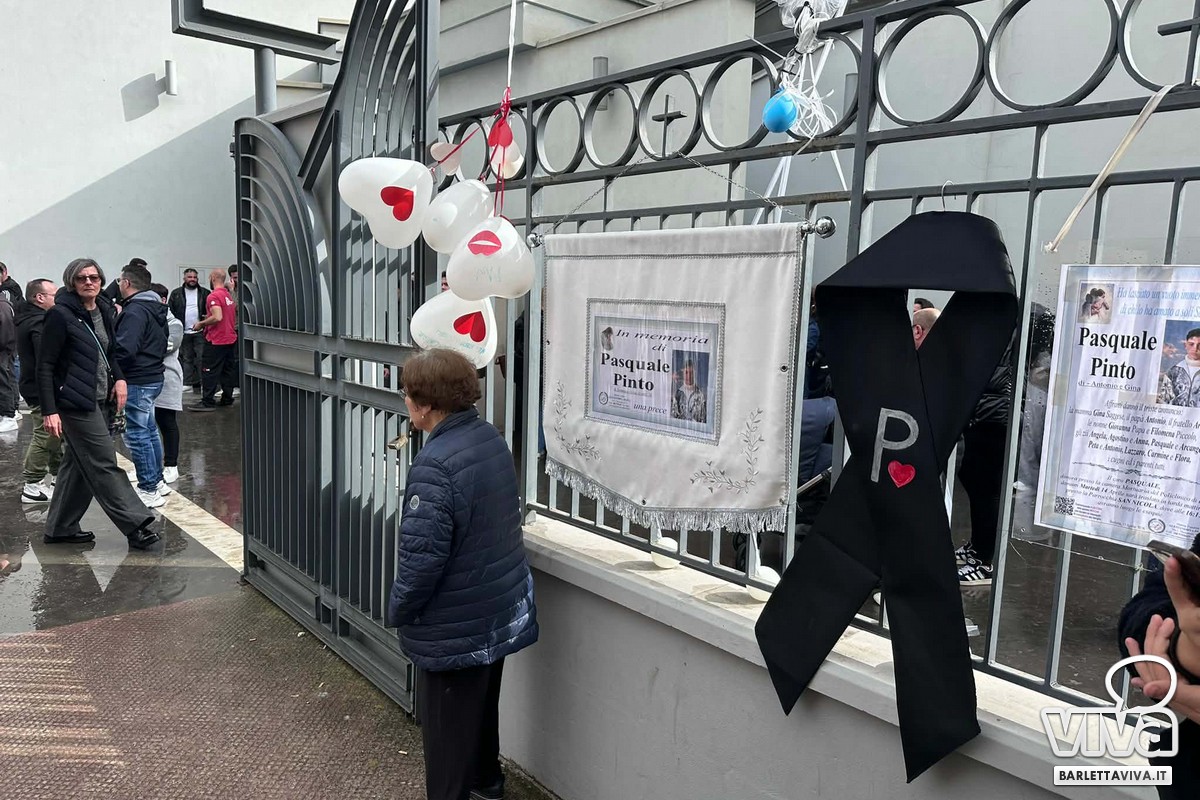 Lacrime, commozione ed una comunità raccolta nel ricordo di un ragazzo di appena 16 anni. La chiesa di San Nicola ha accolto il feretro di Pasquale Pinto, il giovane di Barletta morto sabato al Policlinico di Bari, dopo un incidente stradale nella notte precedente. Il dolore di un'intera città, che ha osservato una giornata di lutto, si è condensato all'interno e all'esterno della parrocchia, con momenti toccanti che hanno squarciato l'anima dei presenti e di chi, discretamente, ha accompagnato con un pensiero il momento di raccoglimento.