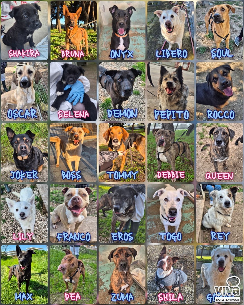 I pelosi del canile di Barletta, sono tutti pronti a trovare una famiglia amorevole: sono sverminati, chippati, vaccinati, castrati/sterilizzati/con obbligo di sterilizzazione, esenti malattie mediterranee; abituati alle manipolazioni, alla pettorina, al guinzaglio, alla macchina (alcuni), al contesto urbano (alcuni), compatibili con altri cani (alcuni). Inoltre sono disponibili sia per adozioni locali (Barletta e provincia), sia centro e nord Italia (dopo iter pre e post affido, arriverebbe tramite staffetta con mezzo omologato ASL).