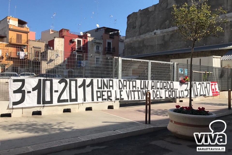 3 Ottobre 2011. «Una data, un ricordo per le vittime del crollo». Sono queste le parole sussurrate da tutti i presenti e che riecheggiano sul luogo del tragico accadimento. Sono queste le parole che i passanti leggono sul lungo striscione. Sei anni fa alle ore 12,22 la palazzina in Via Roma si accartocciò come carta, spezzando cinque vite innocenti: Tina Ceci, Matilde Doronzo, Giovanna Sardaro, Antonella Zaza e Maria Cinquepalmi.