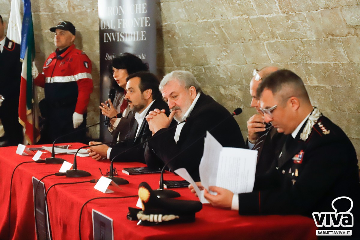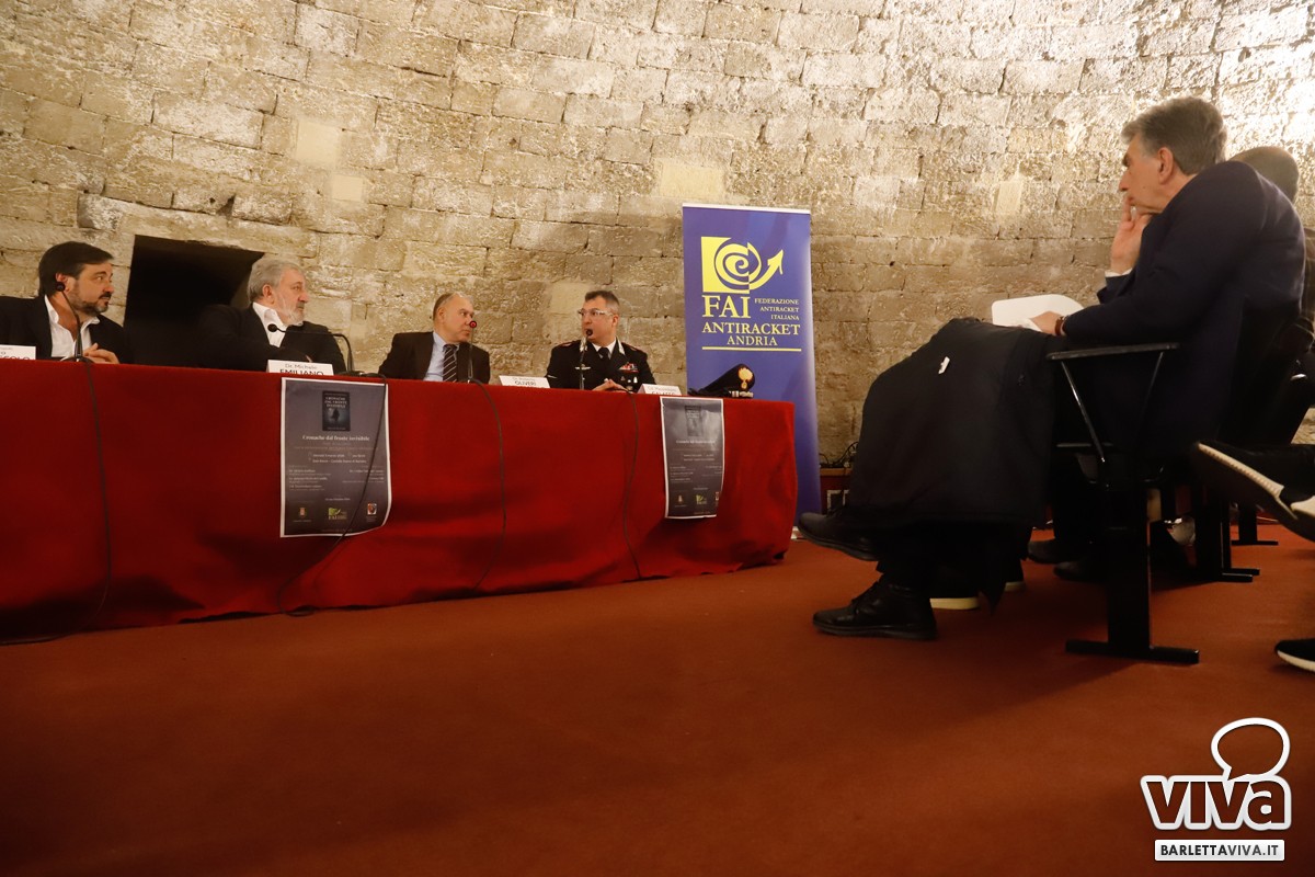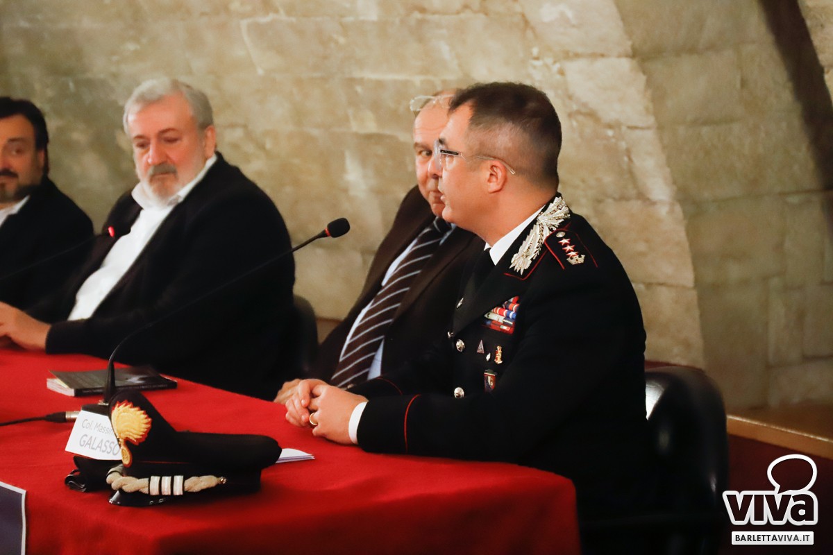 Presenti all'evento, moderato dalla giornalista Floriana Tolve, il Comandante Provinciale dell'Arma dei Carabinieri Colonnello Massimiliano Grasso, il magistrato, nonché ex presidente della Regione Puglia Dott. Michele Emiliano, il magistrato di Corte D'Appello Dott. Roberto Olivieri del Castillo, quest'ultimo per anni operante presso la Procura della Repubblica di Trani, e infine il sindaco Cosimo Cannito e l'assessore alla cultura Oronzo Cilli, in rappresentanza dell'amministrazione comunale di Barletta.