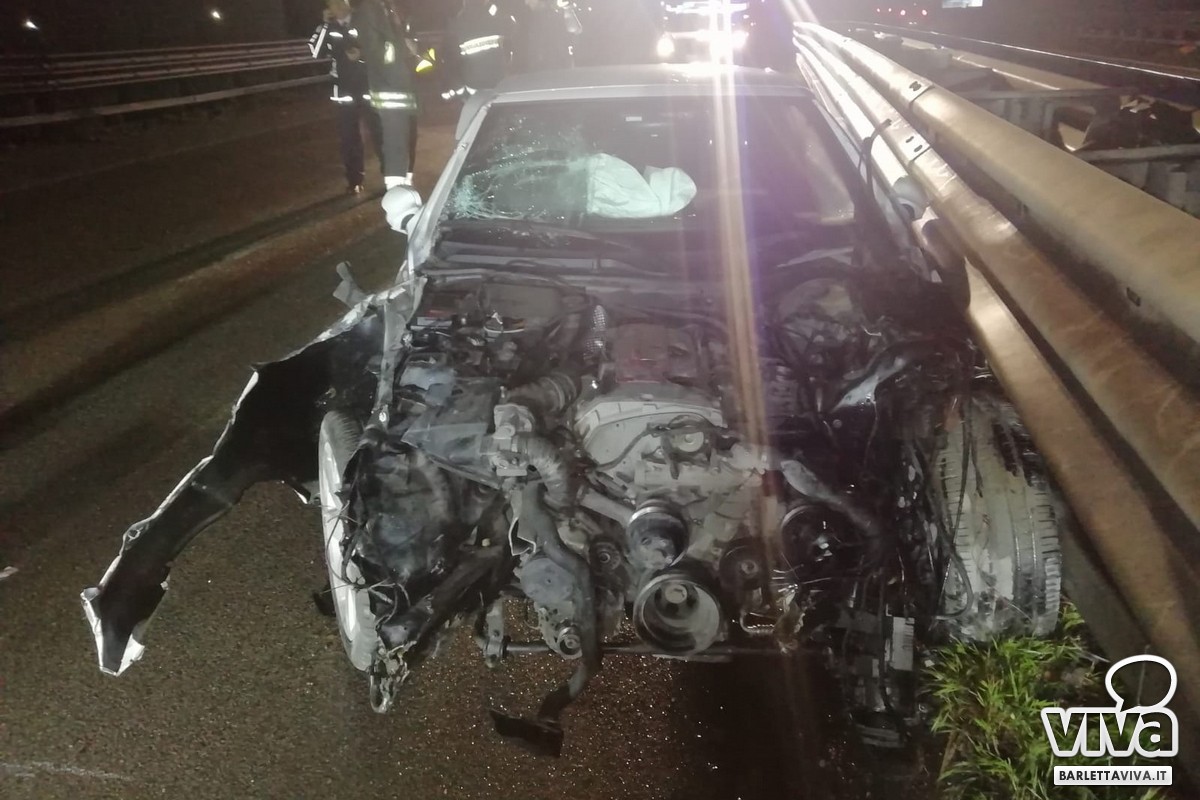 Un gravissimo incidente stradale è avvenuto sulla strada statale 16 bis, km. 745 direzione Bari, località Barberini, in territorio di Barletta, nella notte a cavallo tra sabato 13 e domenica 14 aprile. Un veicolo avrebbe perso il controllo per cause ancora da accertare e dopo aver urtato il guard rail di destra ha invaso la corsia di sorpasso finendo la corsa contro il guard rail centrale che divide le due semicarreggiate.