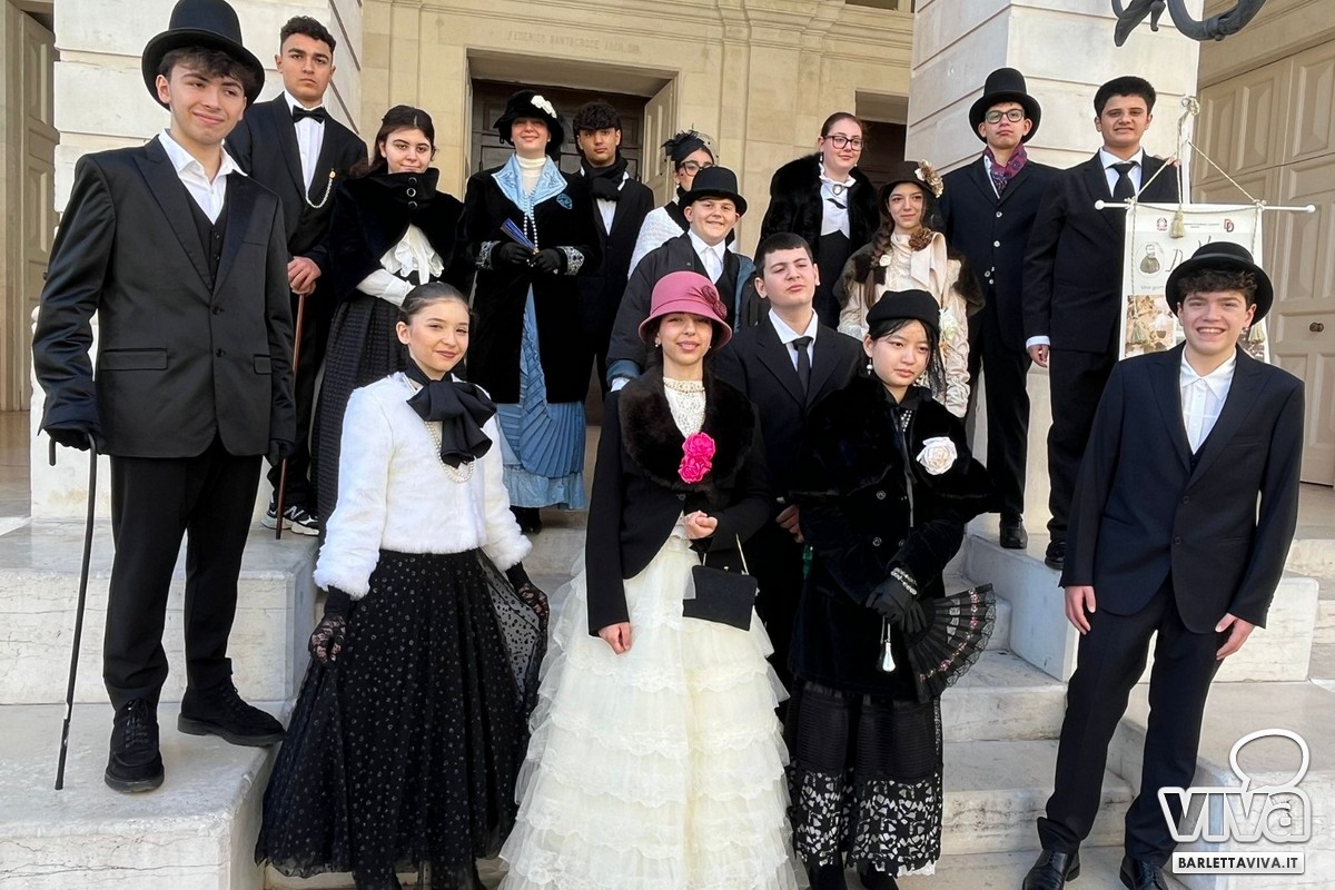 Contemporaneamente, una suggestiva promenade in abiti ottocenteschi ha condotto gli alunni tra i luoghi simbolo della memoria cittadina: dal busto dedicato al pittore nei giardini a lui intitolati, fino alla casa paterna e al Teatro Curci. Un percorso non solo fisico ma simbolico, capace di intrecciare scuola, città e identità culturale.