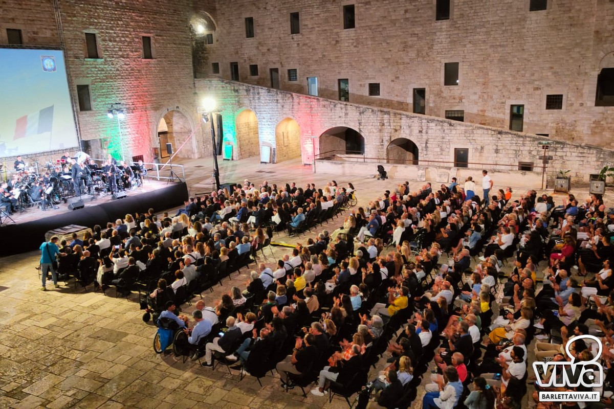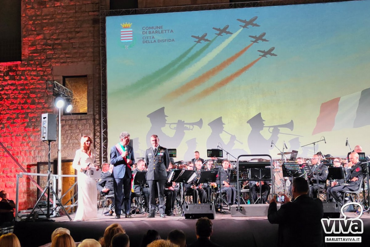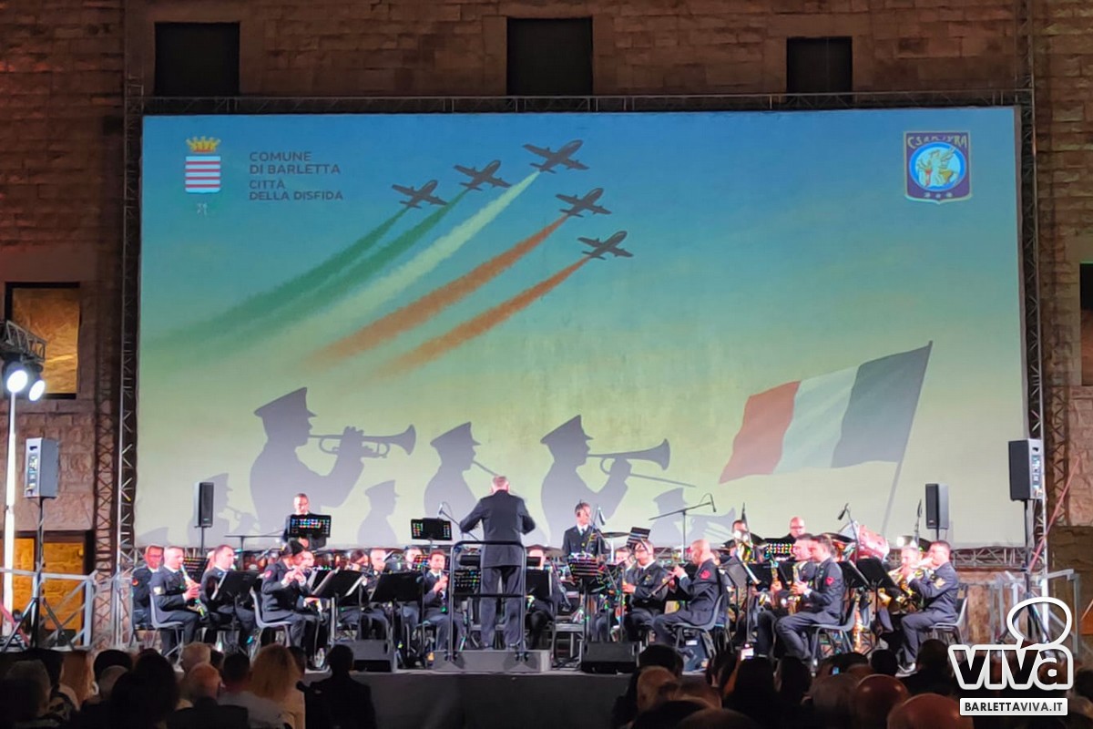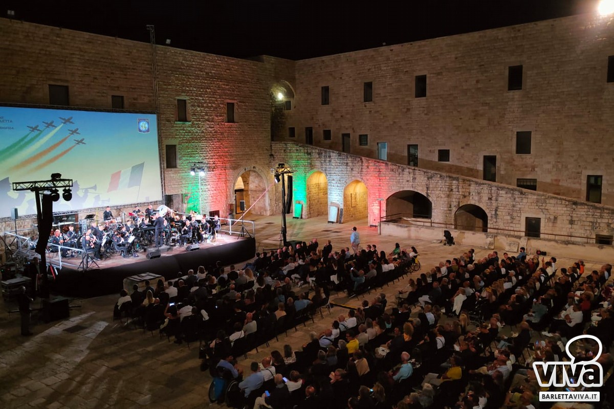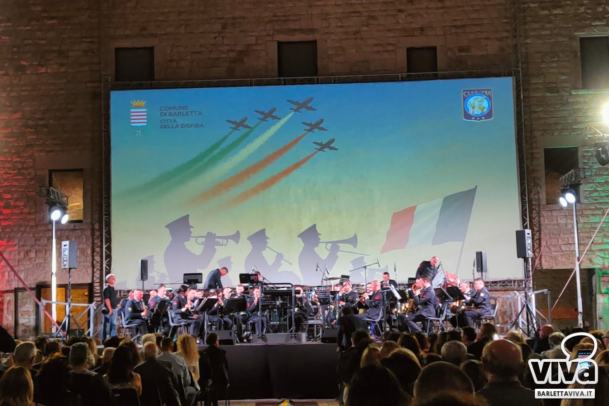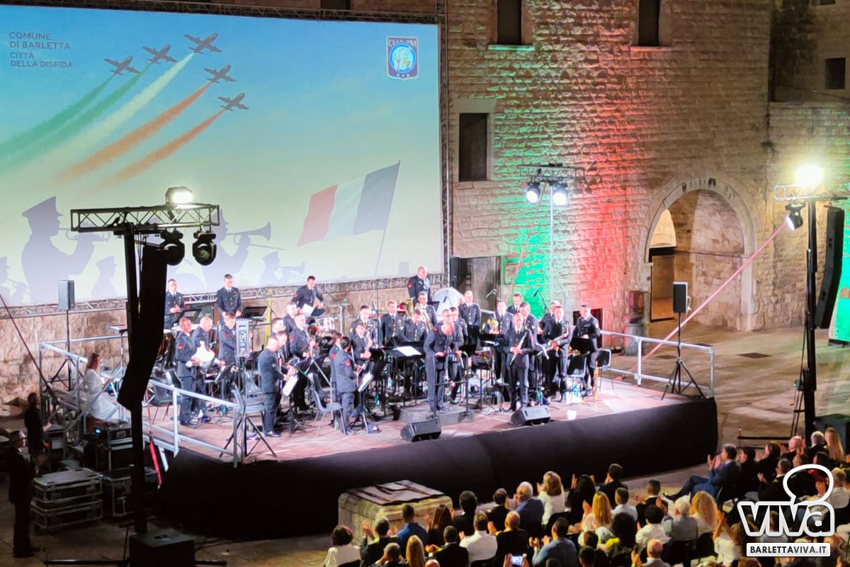 Durante la tiepida serata del 30 agosto, nella Piazza d'Armi del Castello di Barletta la musica è stata protagonista con le note del concerto della Fanfara dell'Aeronautica Militare 3ᵃ Regione Aerea di Bari. A dare il benvenuto ai presenti e ai militari, è stato il Sindaco Cosimo Cannito salito sul palco insieme al Generale di Squadra Aereo Francesco Vestito che, a sua volta, ringrazia per l'invito apprezzando l'accoglienza e la città e ricordando con emozione le sue origini barlettane da parte di padre.
