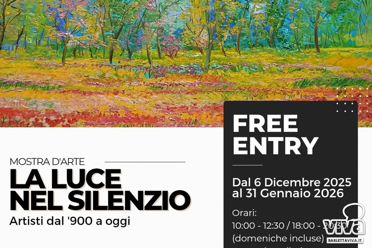 La Galleria d'Arte Artema di Barletta inaugura il 6 dicembre 2025, alle ore 18:30, la mostra "La Luce nel Silenzio - Artisti dal '900 a oggi", un percorso espositivo che riunisce opere di autori moderni e contemporanei. L'esposizione, a ingresso gratuito, rimarrà aperta fino al 31 gennaio 2026.