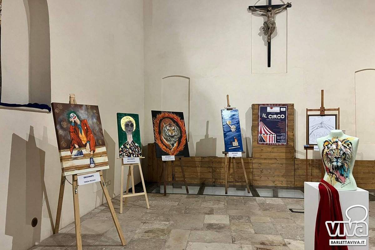 Le opere richiamano figure di clown, carte da poker e animali fantastici trasformando le mura dell'antico spazio in un palcoscenico di luci e suggestioni. A dominare è il colore: accesi contrasti, tinte brillanti e combinazioni audaci evocano il ritmo e la vitalità del circo catturando lo sguardo dello spettatore e invitandolo a giocare in un universo fatto di meraviglia e leggerezza. Rosso, giallo, blu e verde si inseguono e dialogano tra loro, generando un impatto visivo che cattura e diverte, senza mai risultare caotico. Oltre all'impatto estetico, la mostra invita a riflettere sul circo come metafora: equilibrio e rischio, illusione e realtà, disciplina e gioco. In questo dialogo tra sacro e profano, tra antico e contemporaneo, l'arte apre uno spazio di stupore collettivo, dove lo spettatore è parte integrante dello spettacolo.