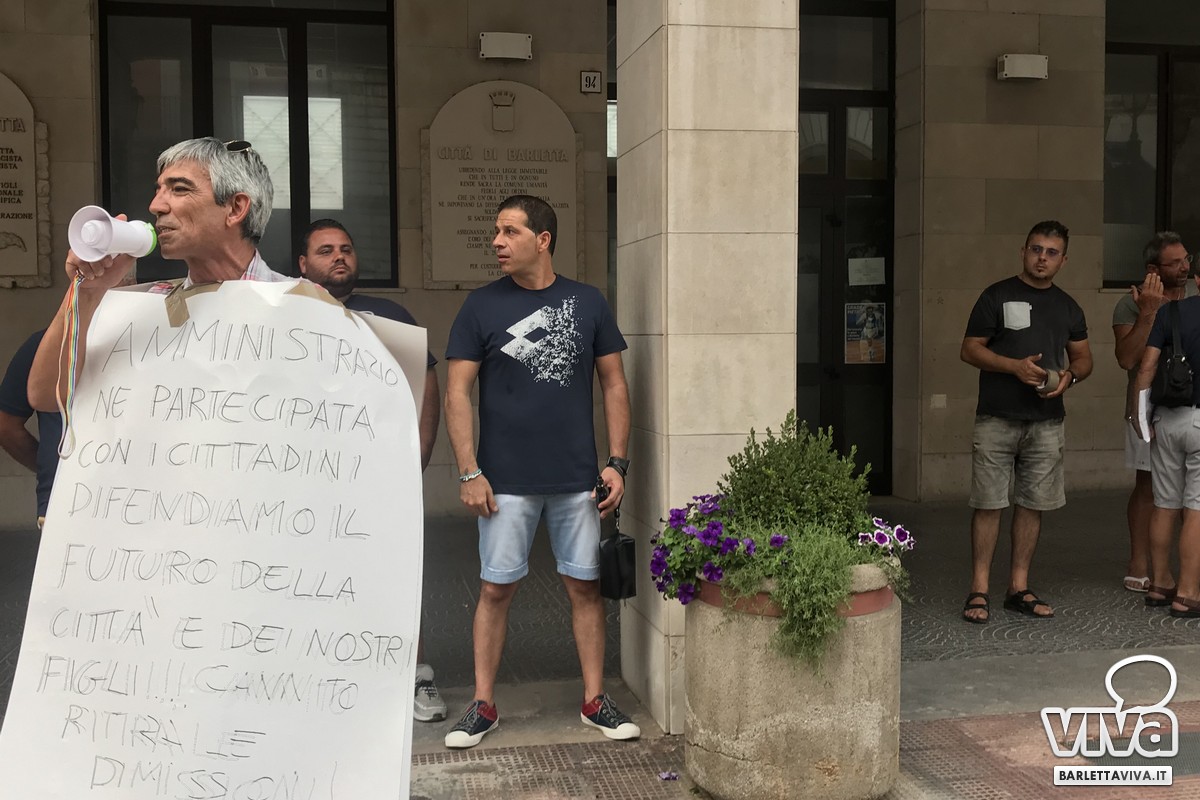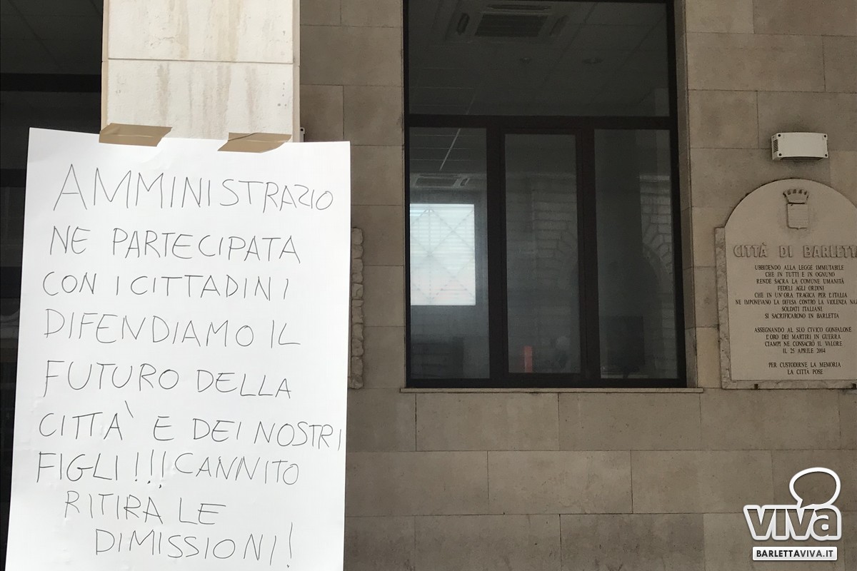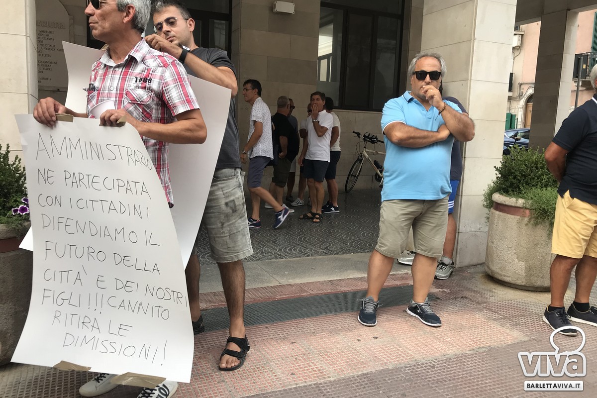 Mentre nelle stanze del palazzone si stavano decidendo le sorti di Barletta, "sotto" il comune si svolgeva un sit in di protesta, affinché Cannito ritiri quanto prima le dimissioni. Tale manifestazione è stata organizzata dall'Associazione Barletta 360° capitanata dal signor Rocco Tarantino. «I cittadini hanno sopportato le diatribe interne alla maggioranza – sostiene Tarantino - pensando si trattasse di problemi di natura logistica. Pian piano abbiamo compreso che si stava semplicemente ricattando il nostro sindaco. Non si può ignorare la volontà del popolo e il suo voto. Cannito deve restare al fianco della città, in quanto è stata la persona scelta dai cittadini attraverso le elezioni del 10 giugno».