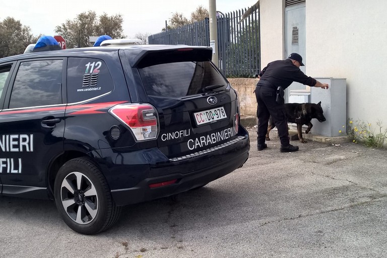 In una seconda operazione i Carabinieri, al termine di un servizio di osservazione, hanno arrestato G.L. 30enne, il quale veniva trovato in possesso di sette involucri in cellophane contenenti sostanza stupefacente del tipo cocaina, e la somma di 100 euro provento dell'attività di spaccio. Una perquisizione domiciliare effettuata presso l'abitazione di un sorvegliato speciale di p.s. effettuata con l'ausilio di unità cinofila antidroga dei Carabinieri di Modugno (BA), ha portato all'arresto di A.R. 37enne. In un ripostiglio ubicato nel seminterrato dell'abitazione il fiuto del cane antidroga Fighter ha permesso di rinvenire un involucro in plastica contente 23 grammi di sostanza stupefacente del tipo cocaina, nonché tutto il materiale per il confezionamento tra cui anche bilancini di precisione; l'uomo è stato tradotto presso la casa circondariale di Trani.