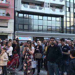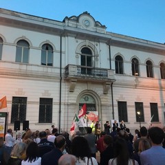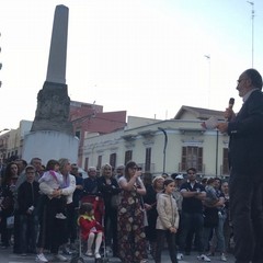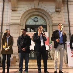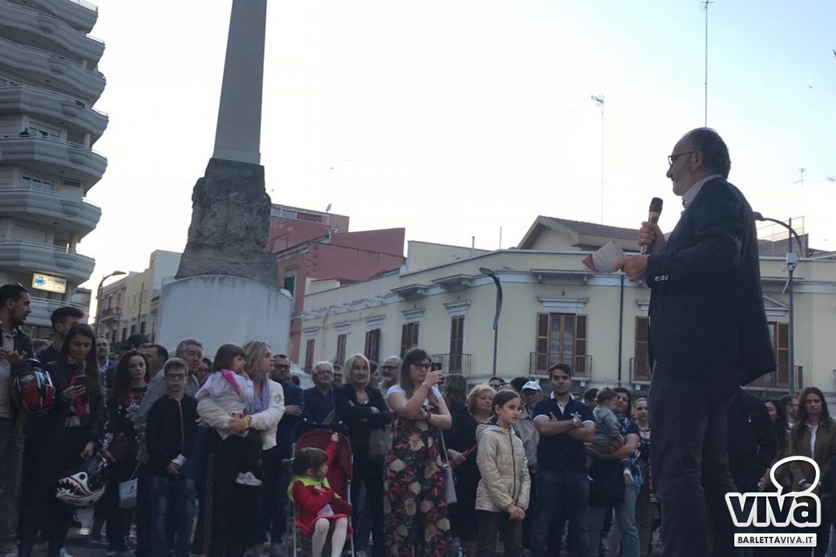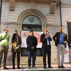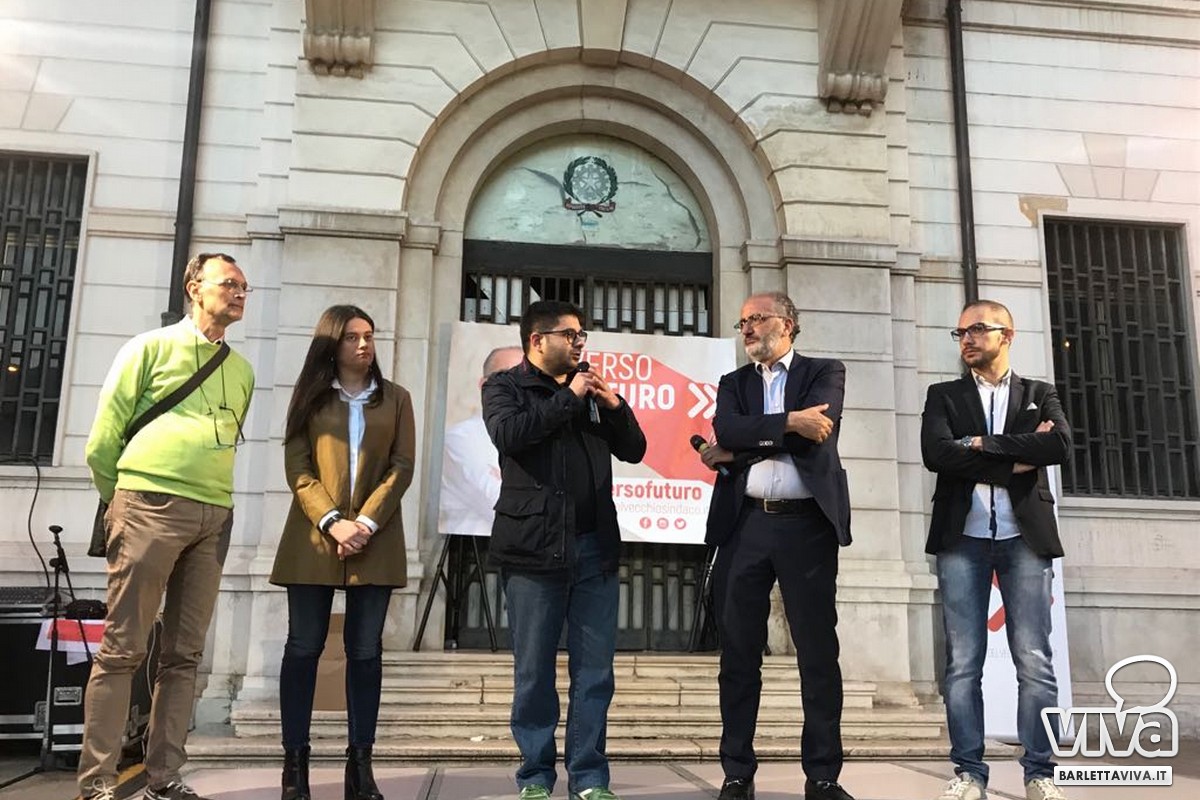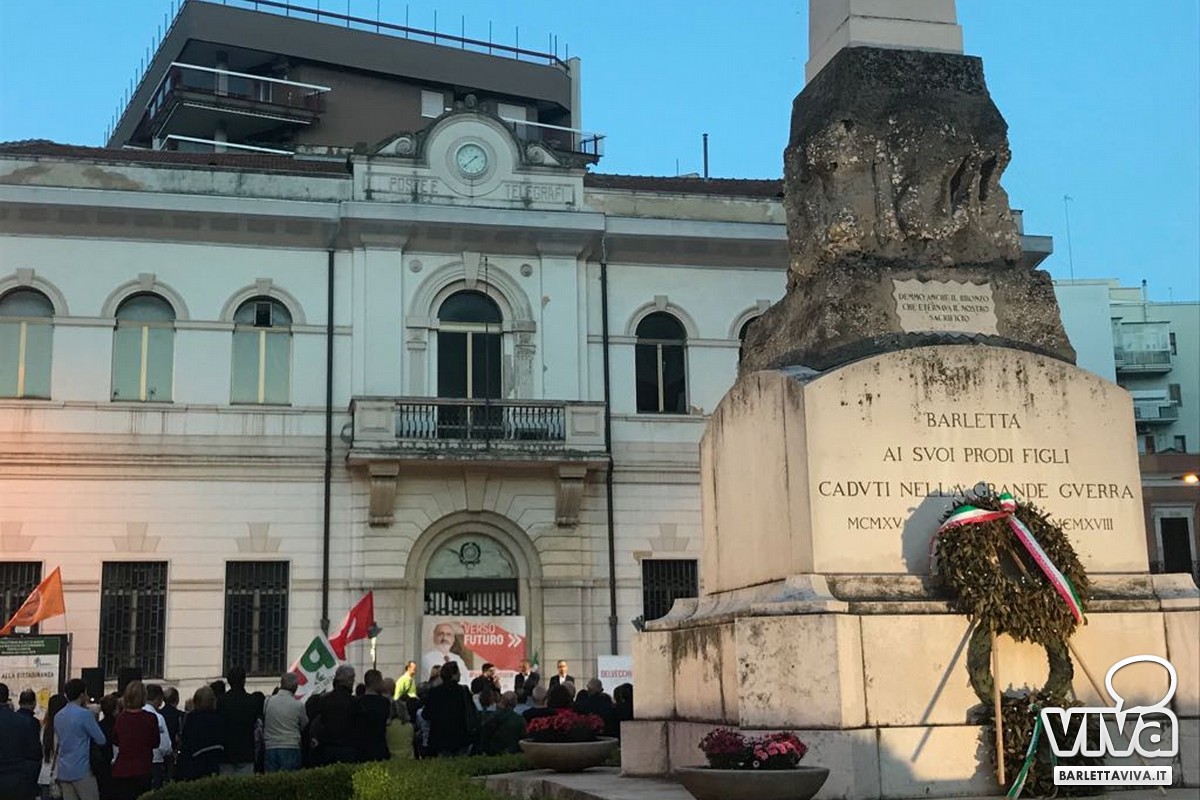 Grande la partecipazione cittadina in piazza Caduti ieri sera per la presentazione delle quattro liste a sostegno del candidato sindaco Dino Delvecchio: Barletta più, Articolo uno, Barletta verso il futuro e Partito Democratico.